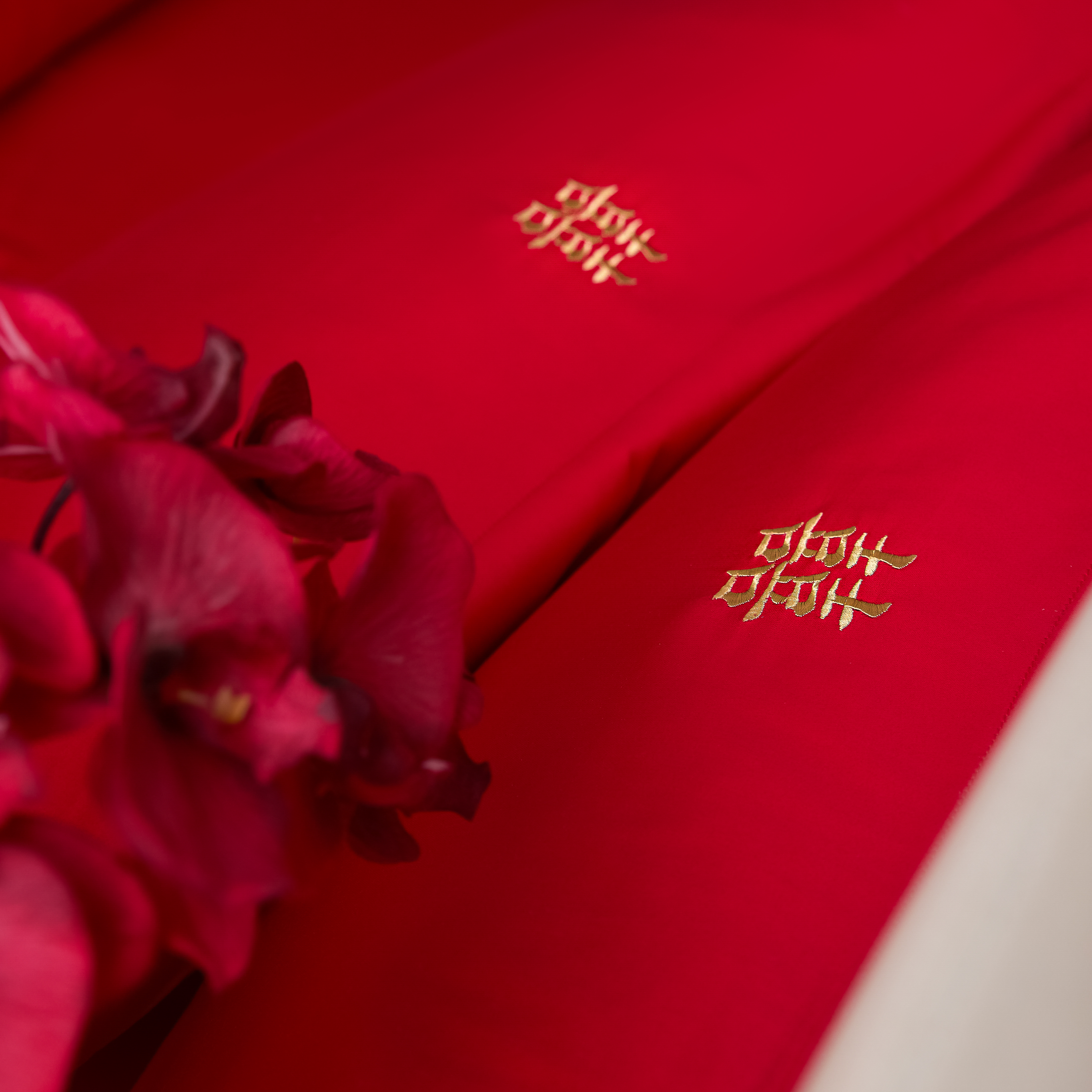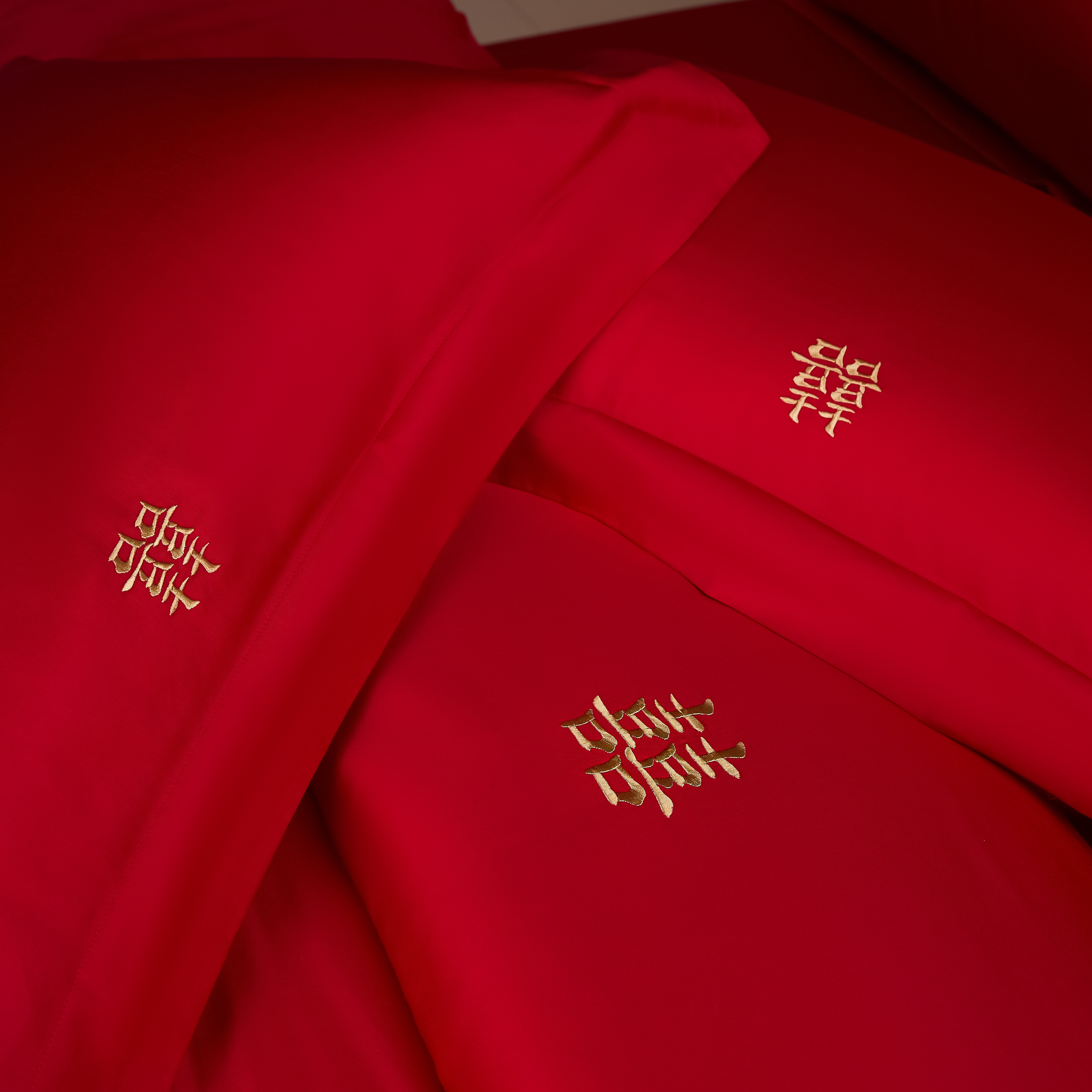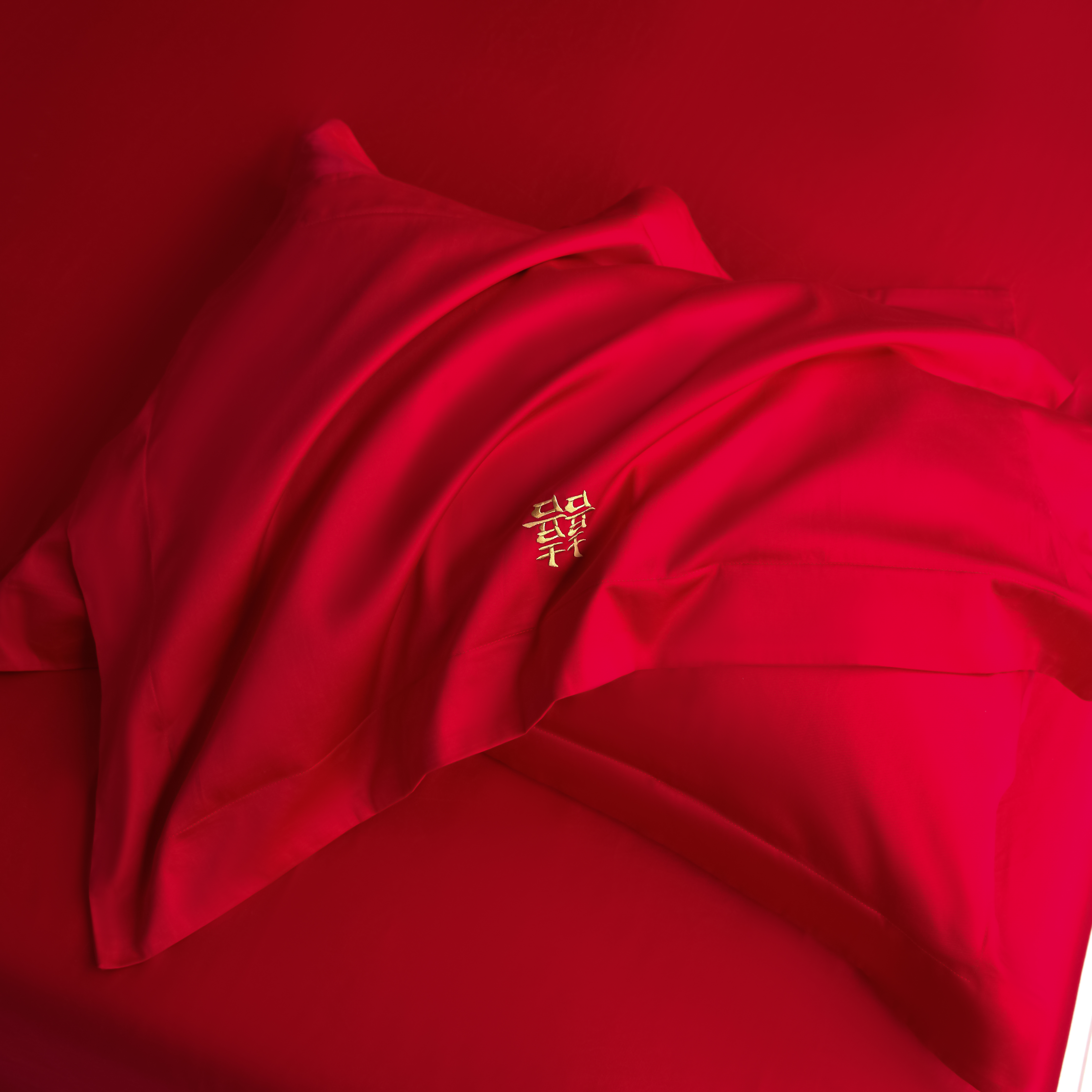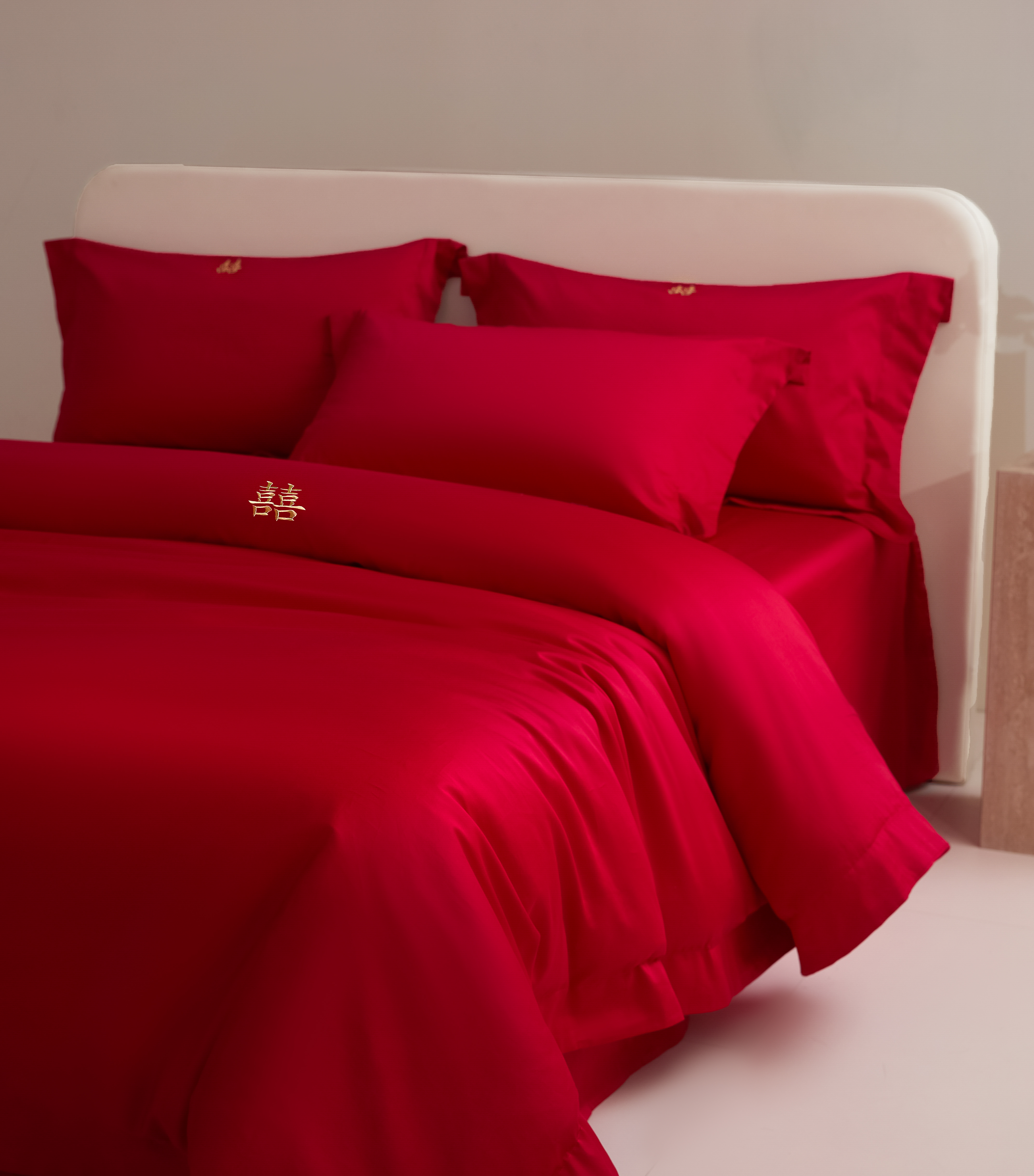 商品名称:(总)秀色家纺 2025新款高档100支新疆长绒棉婚庆四件套纯棉喜被全棉大红色结婚床单被套-囍