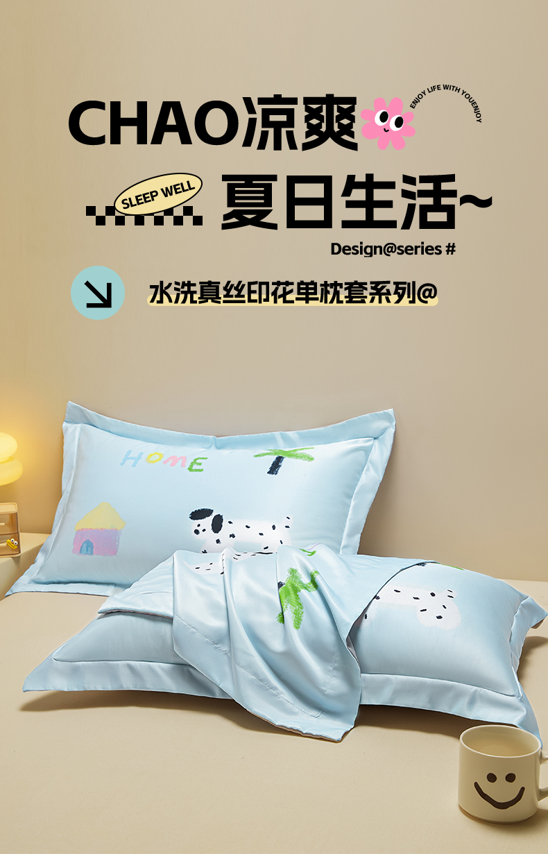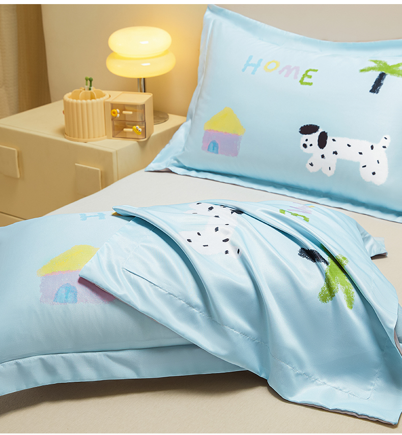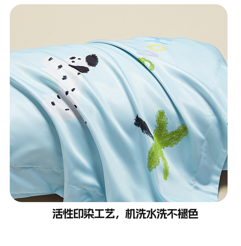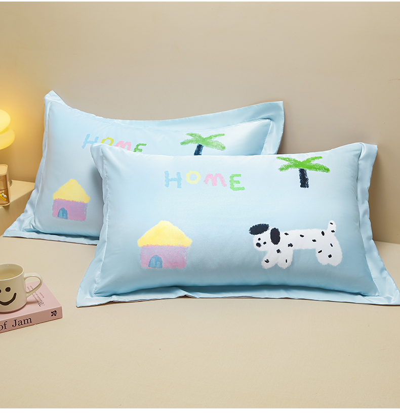 笙意家纺 2025新款水洗真丝数码印花卡通枕套 斑点狗