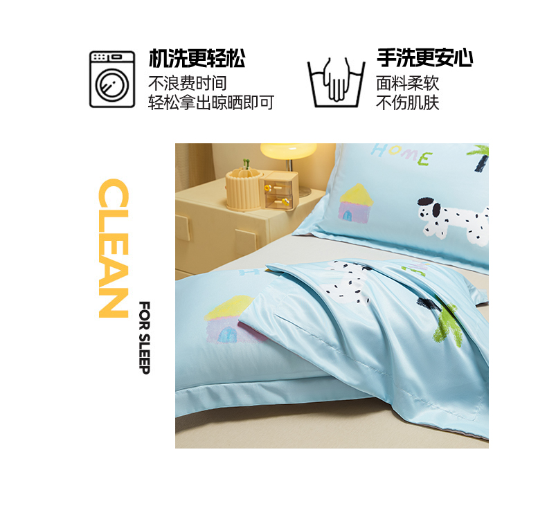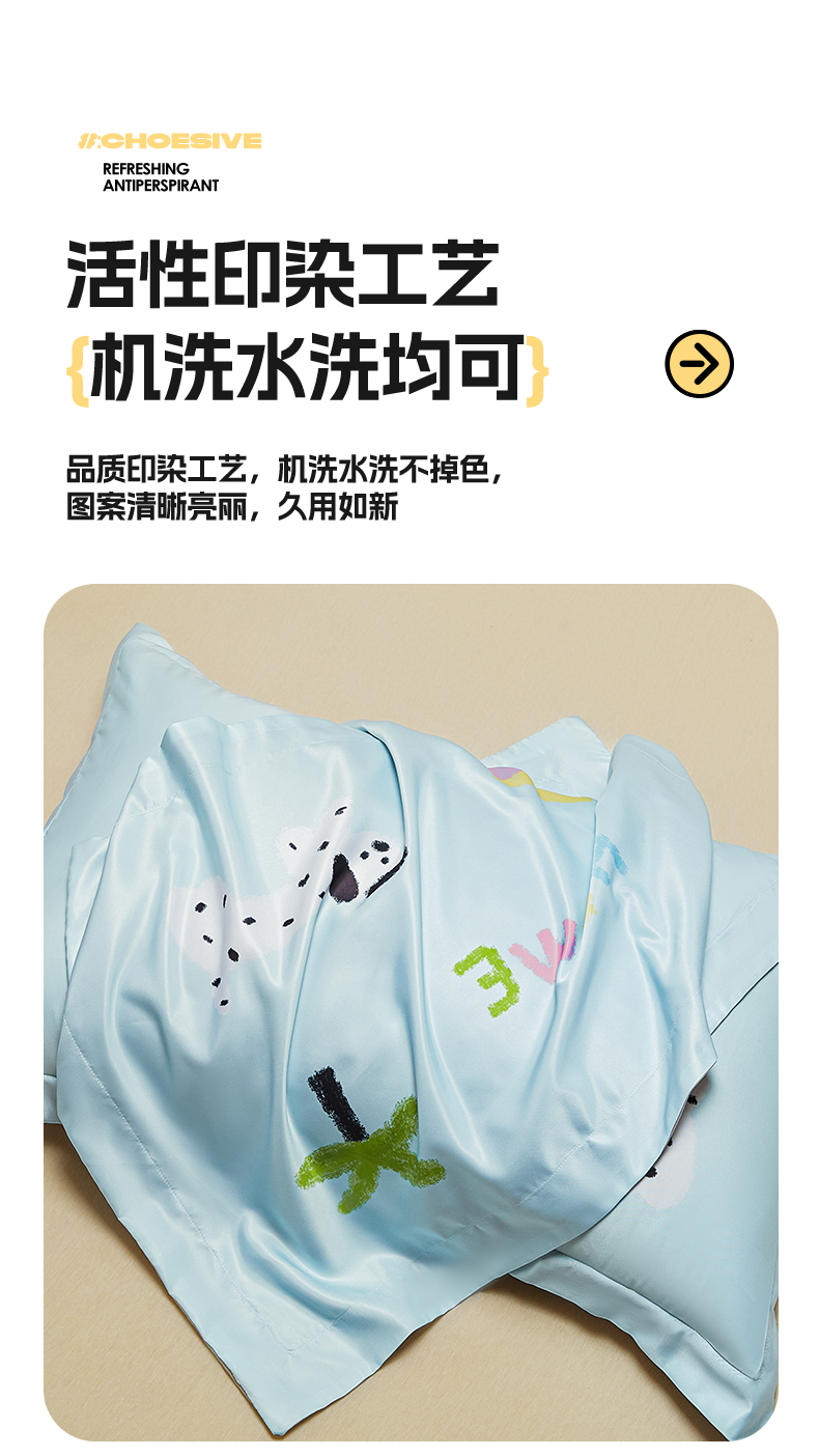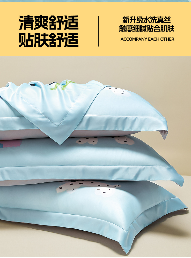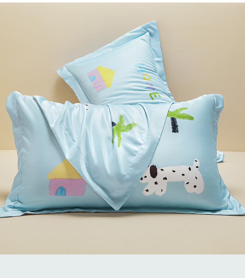 笙意家纺 2025新款水洗真丝数码印花卡通枕套 斑点狗