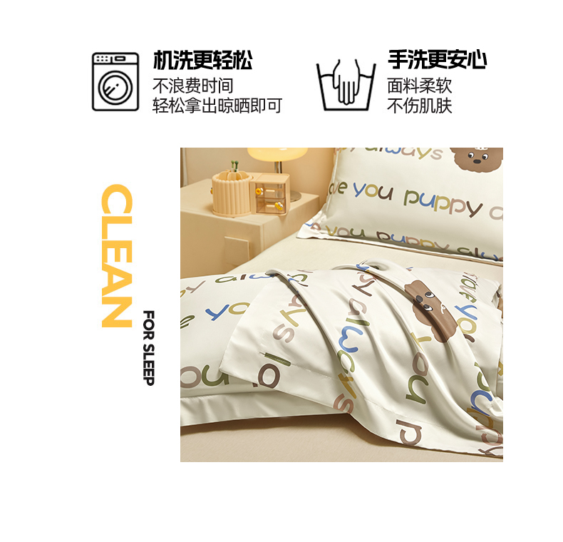 商品名称:笙意家纺 2025新款水洗真丝数码印花卡通枕套 泰迪狗