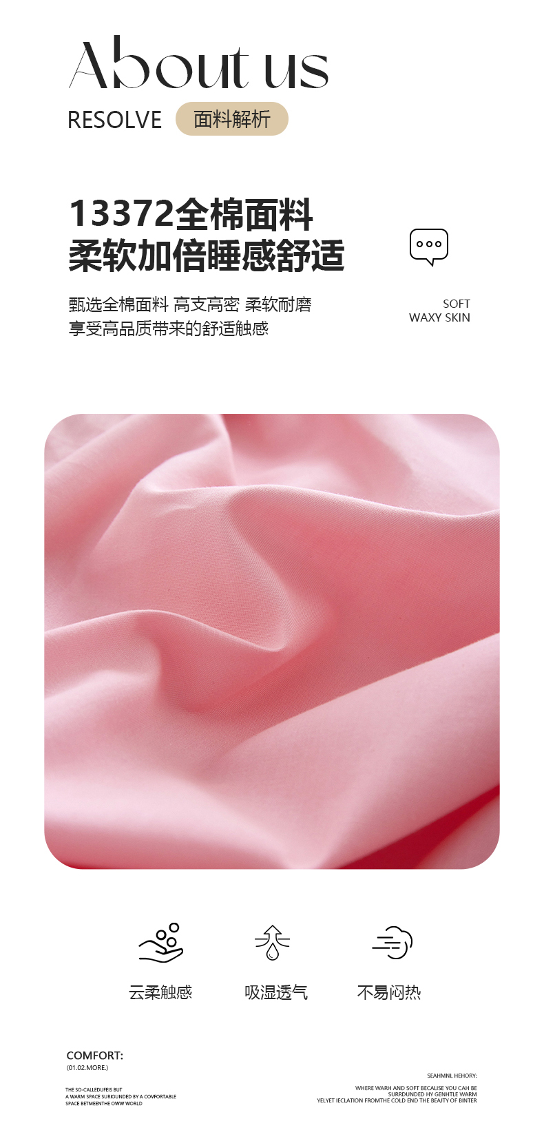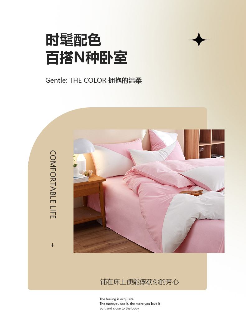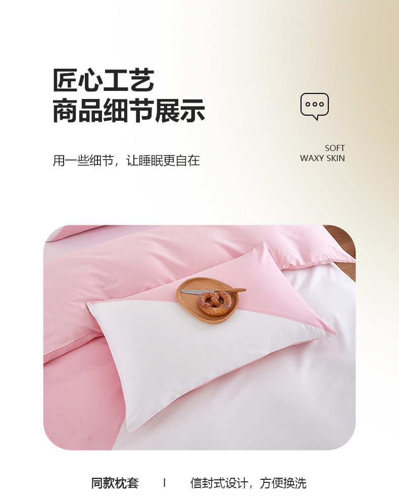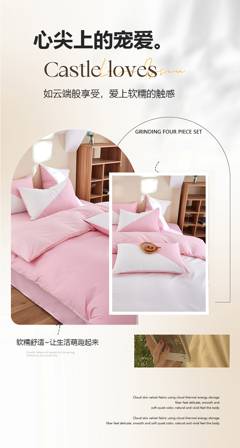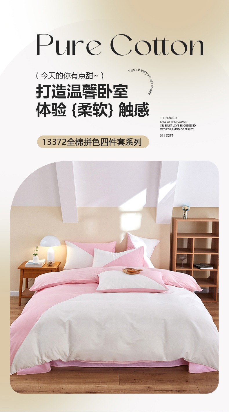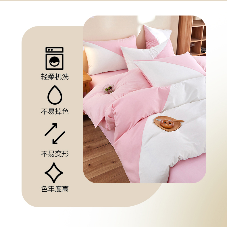 商品名称:慕希2025新款40S全棉喷气13372简约三角拼四件套 简约-嫩粉白