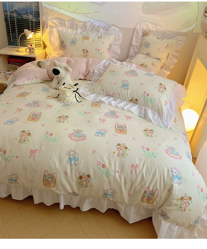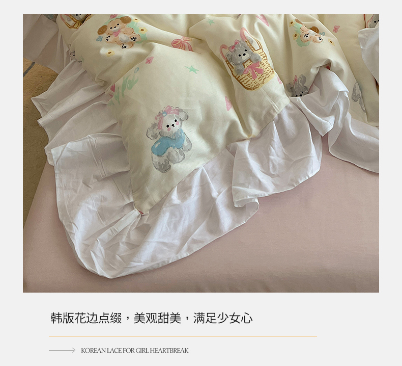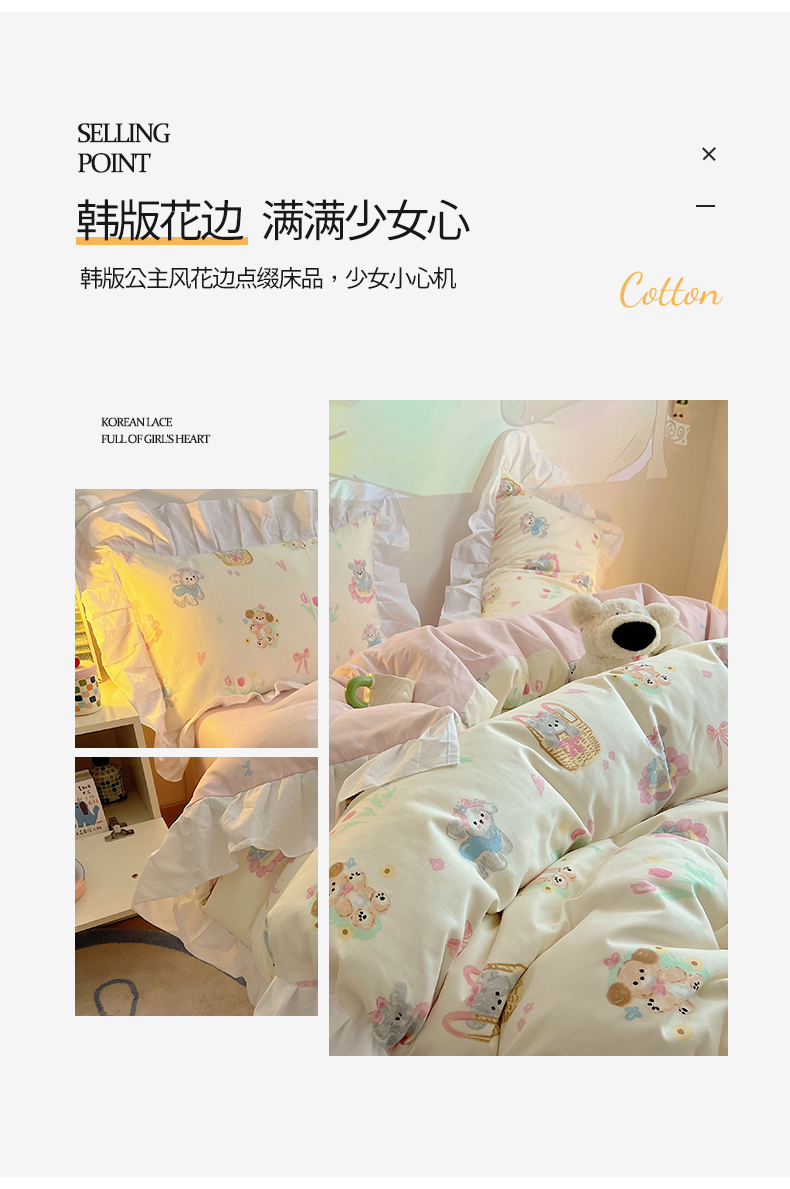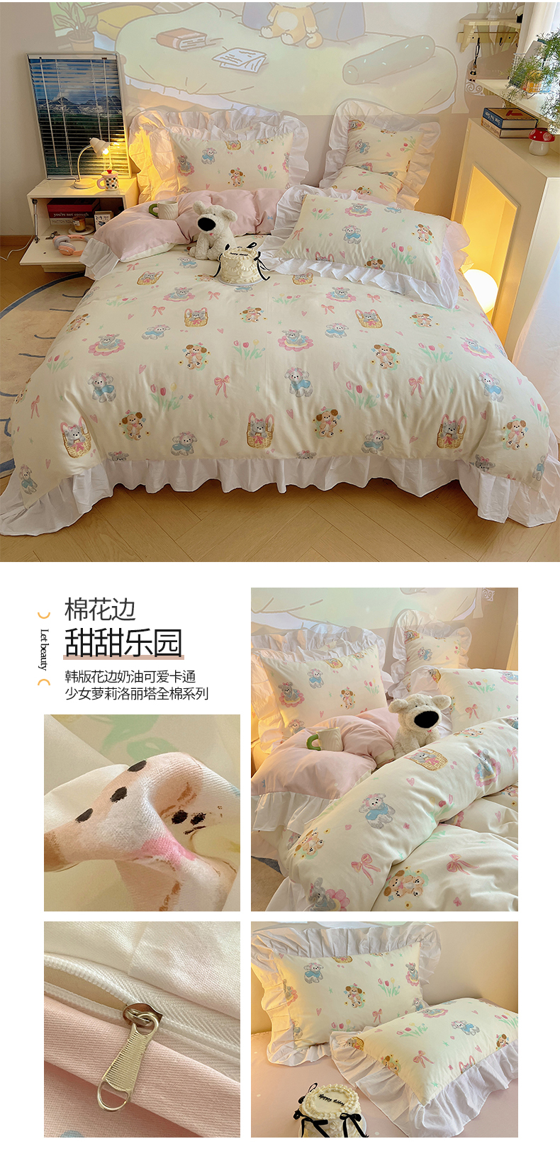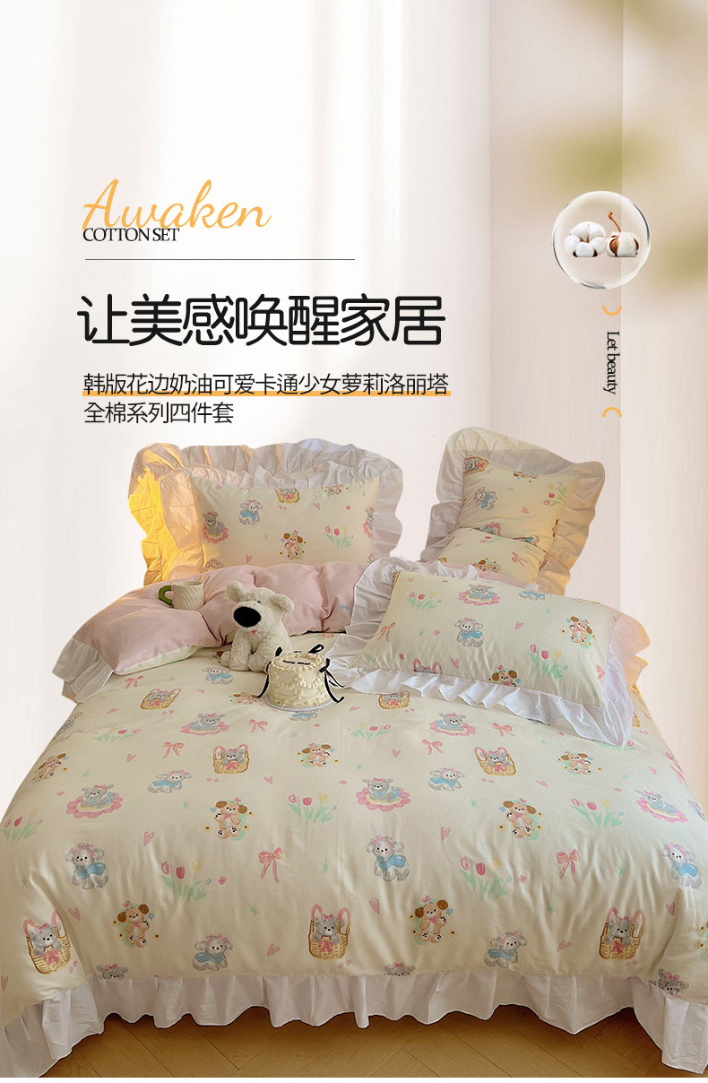 2025纯棉韩版花边奶油可爱卡通少女萝莉洛丽塔系列全棉卡通四件套 棉花边-甜甜乐园