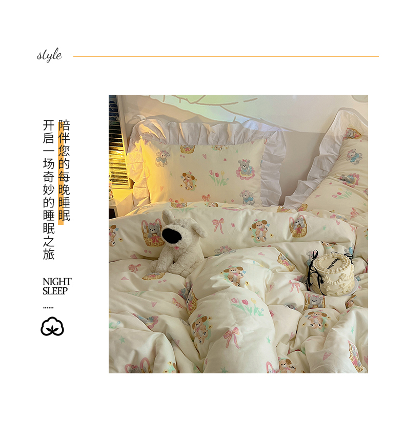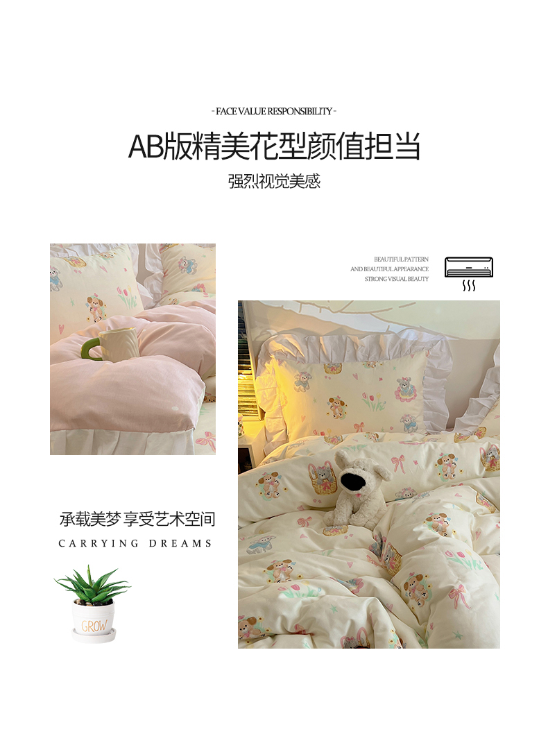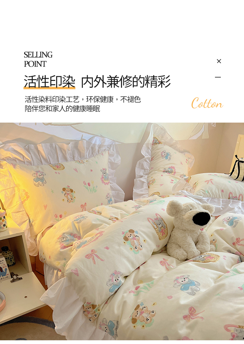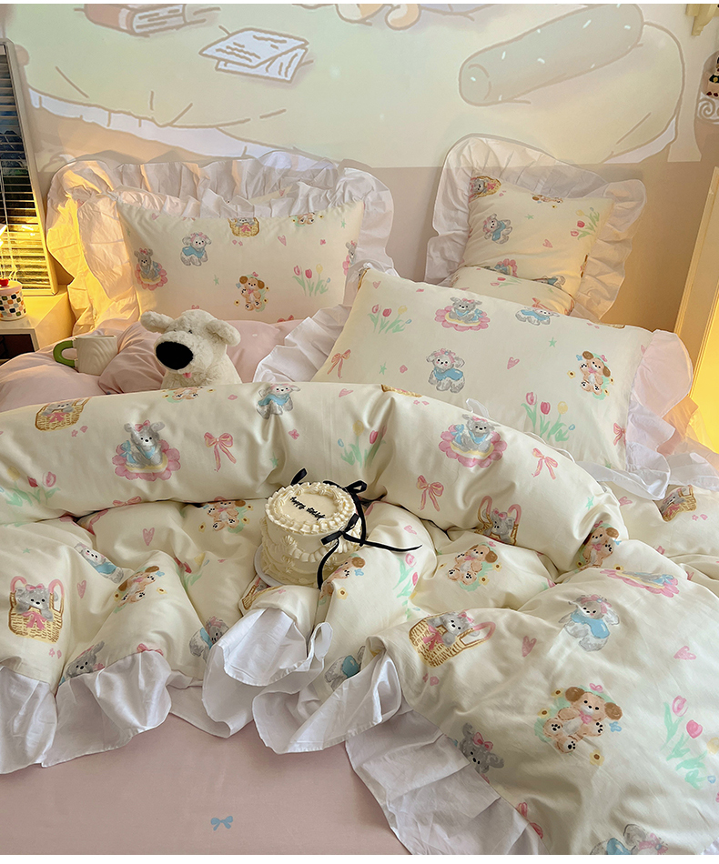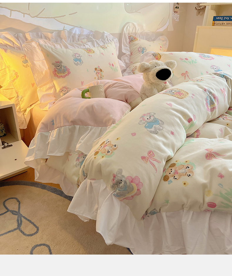 2025纯棉韩版花边奶油可爱卡通少女萝莉洛丽塔系列全棉卡通四件套 棉花边-甜甜乐园
