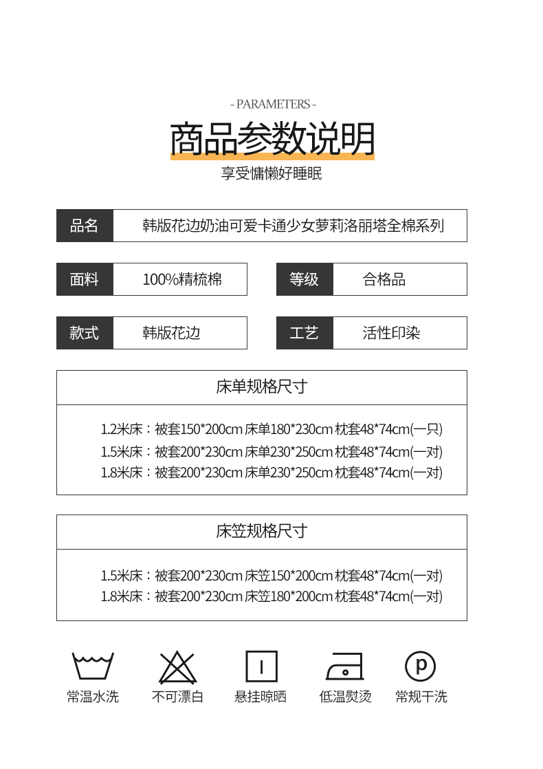 商品名称:2025纯棉韩版花边奶油可爱卡通少女萝莉洛丽塔系列全棉卡通四件套 棉花边-甜甜乐园