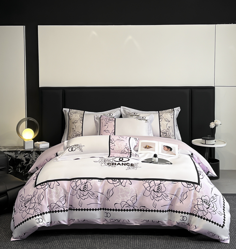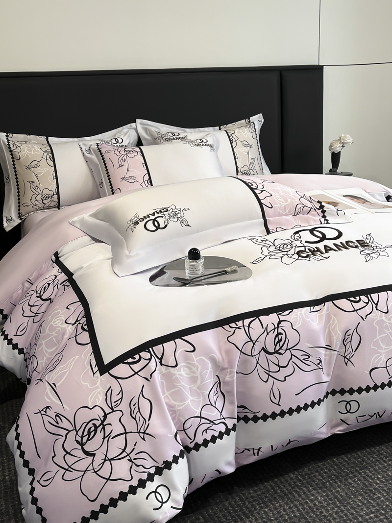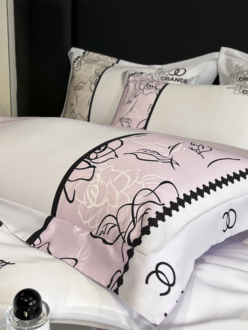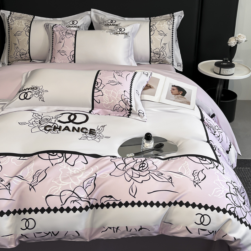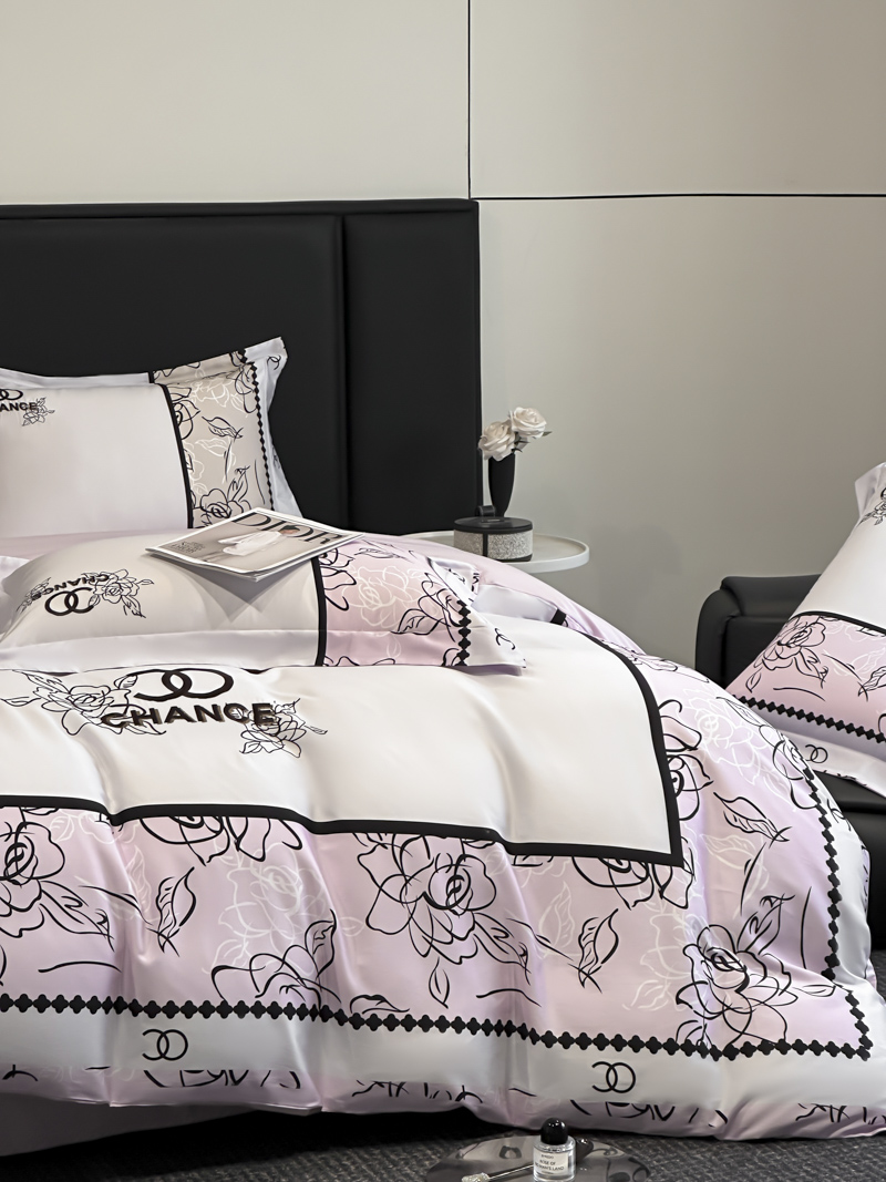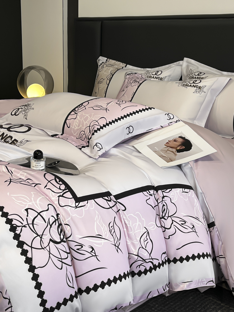 (总)博纳家纺 2026新款正宗60支纯棉 活性数码印花 宽边高级简奢 撞色拼角 纯棉四件套,查尔斯,清沙月贝,睡美人,玉树临风