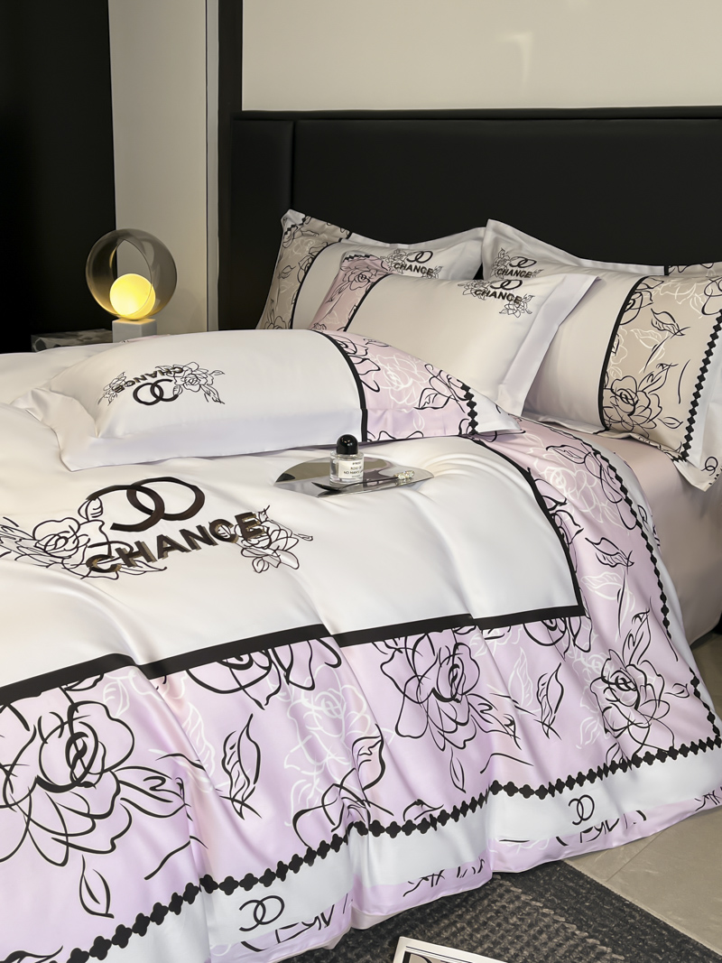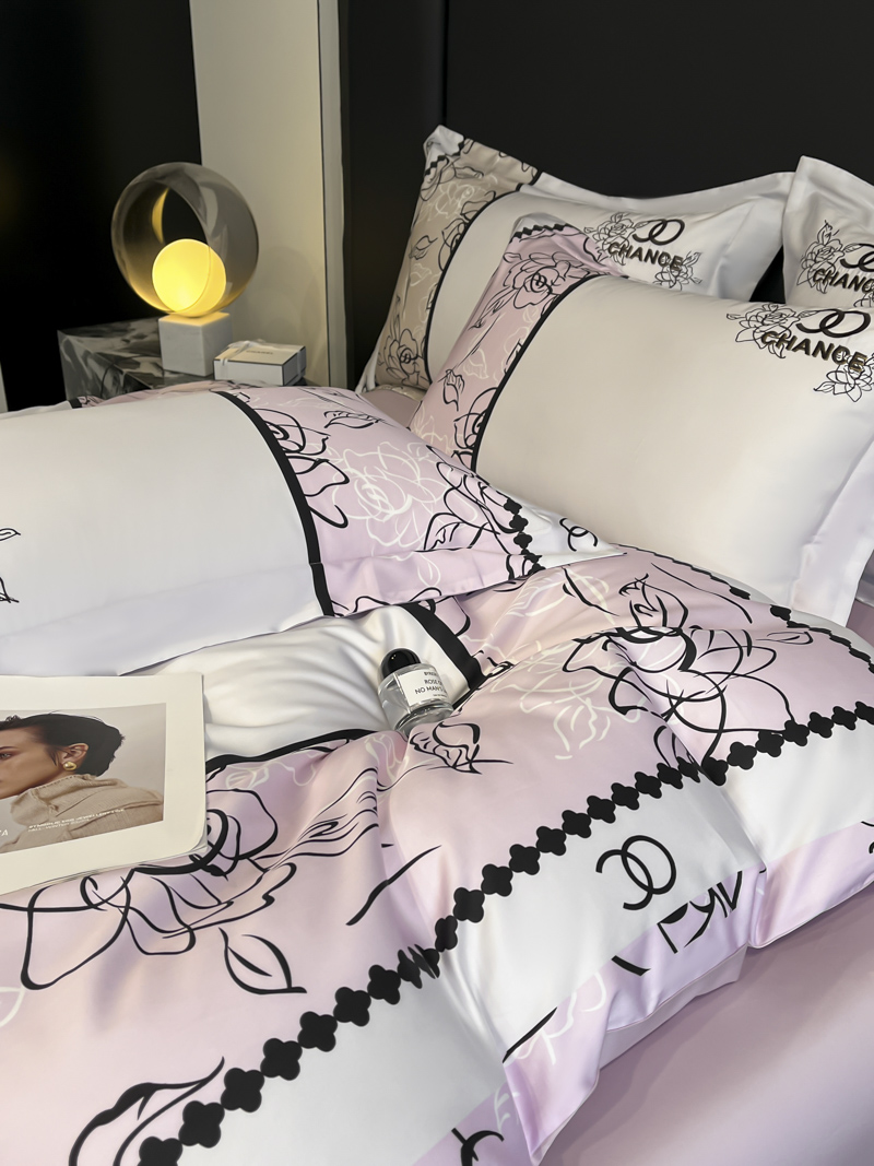 2025新款博纳家纺 纯棉数码印花+绣花四件套 粉紫色