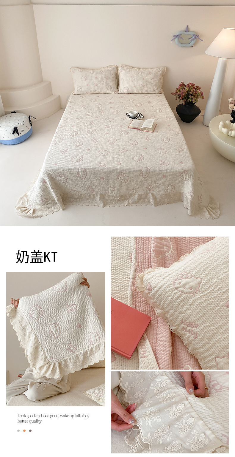 (总)麻依 2025新款安心棉床盖三件全棉四层纱布床单,粉色KT猫,花园小兔,凯蒂的快乐,可爱鸭鸭,可可猫咪-奶茶,可可猫咪-深咖,蓝色熊猫,团团KT,小熊格格,心心领结,欣欣樱桃,雪漫,樱桃兔猫,组合