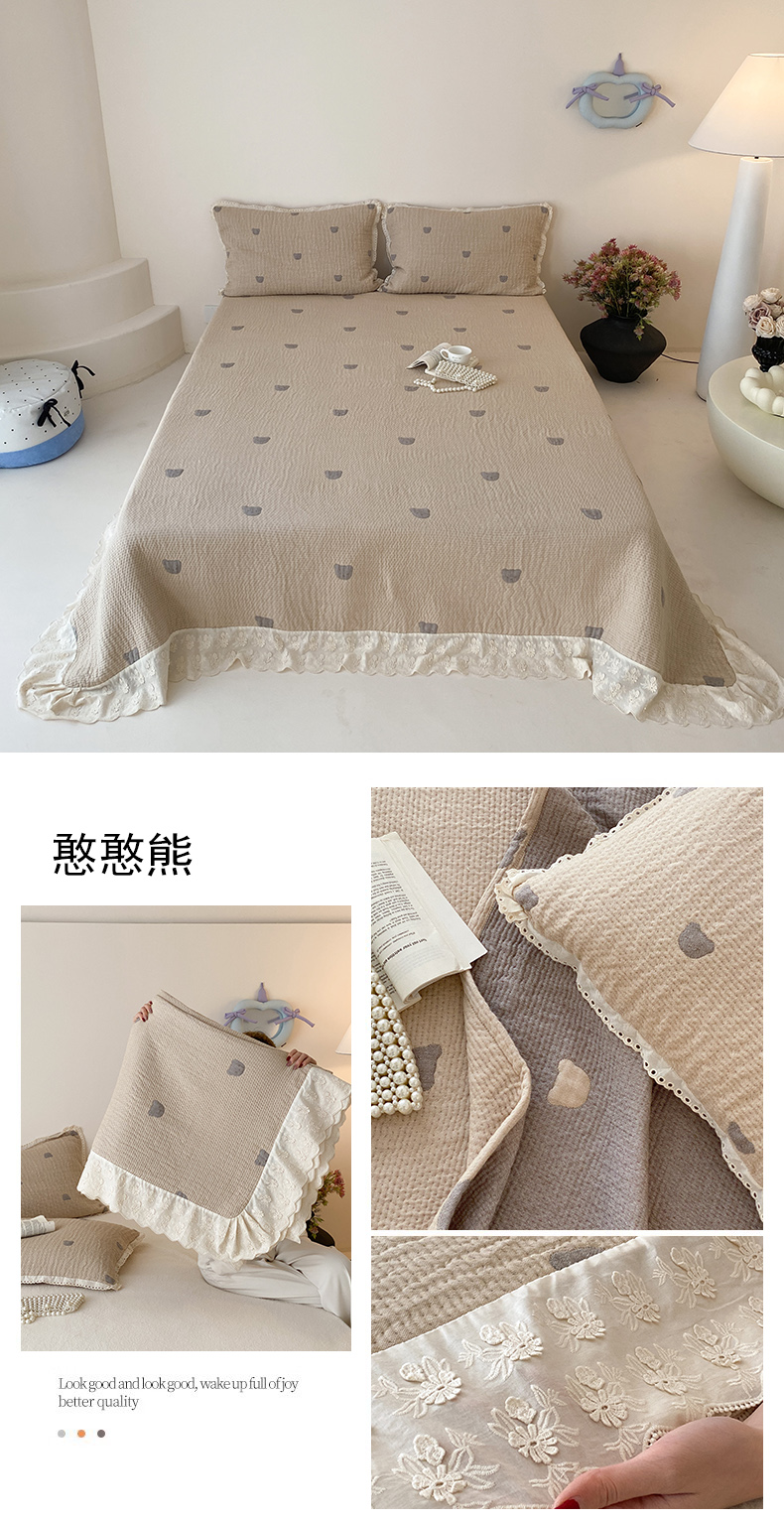 (总)麻依 2025新款韩国清新全棉纱布床盖三件套,憨憨熊,彩色南瓜,车厘子,两颗草莓,奶盖KT,奶油波点-灰,奶油彩点,水蓝KT,水墨花,丝带,桃心-米白,小猫鱼