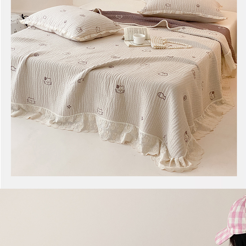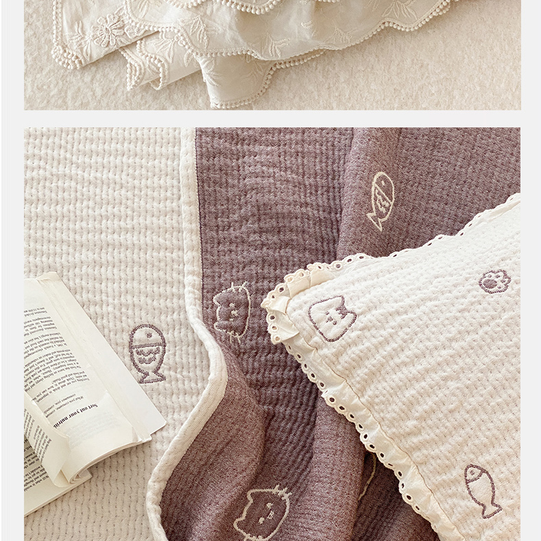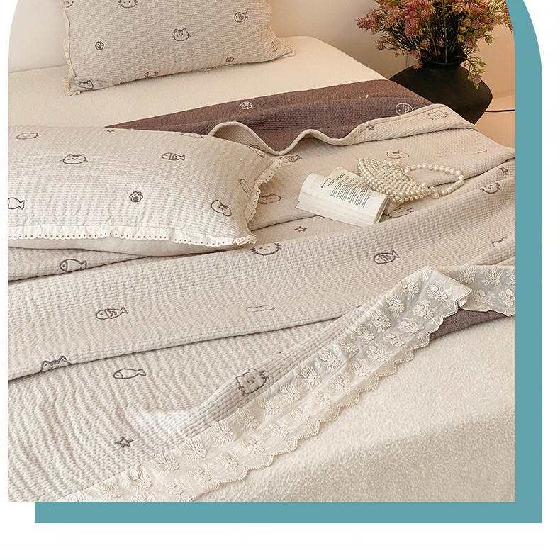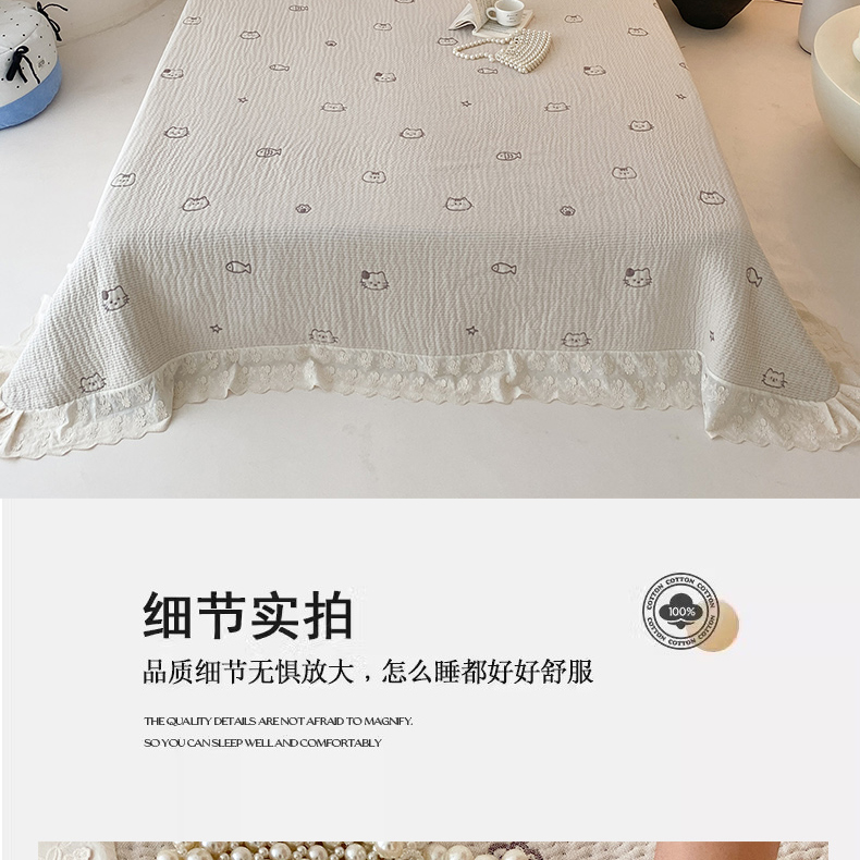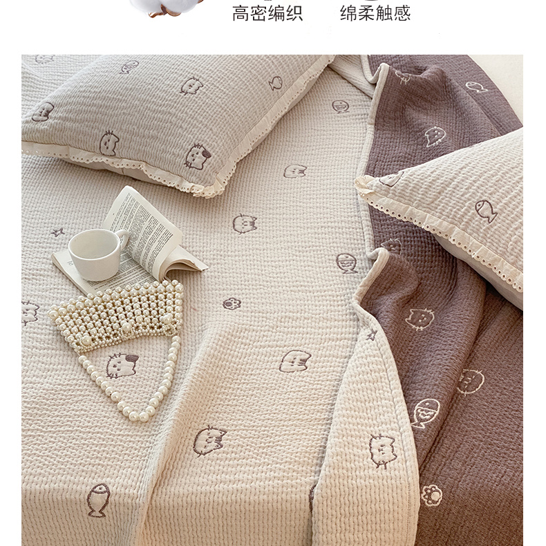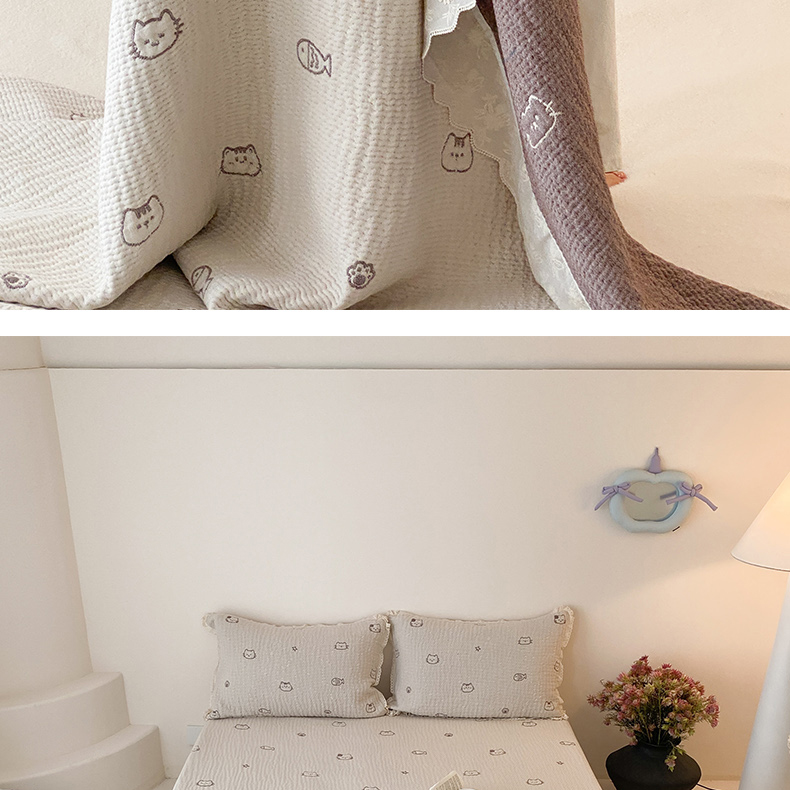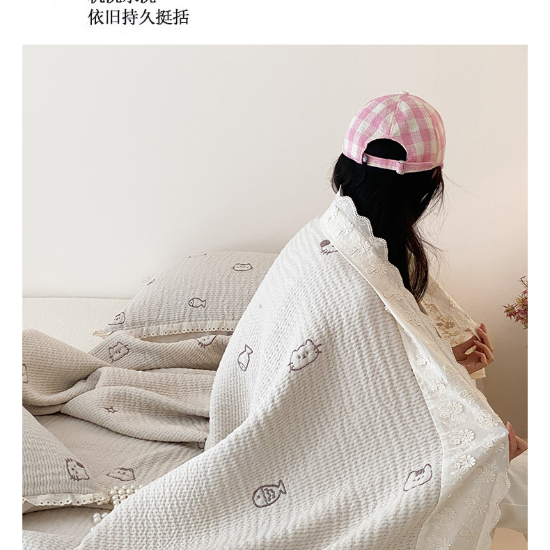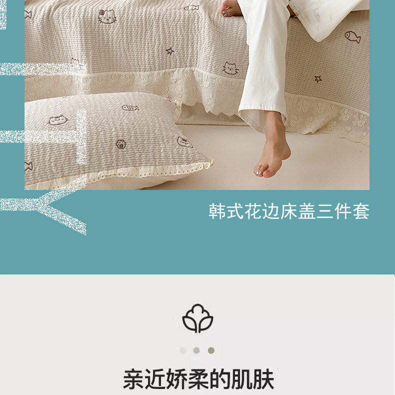 商品名称:麻依 2025新款韩国清新全棉纱布床盖三件套 小猫鱼