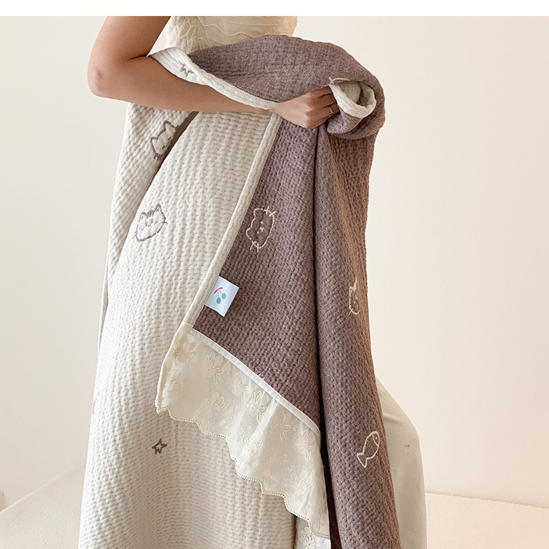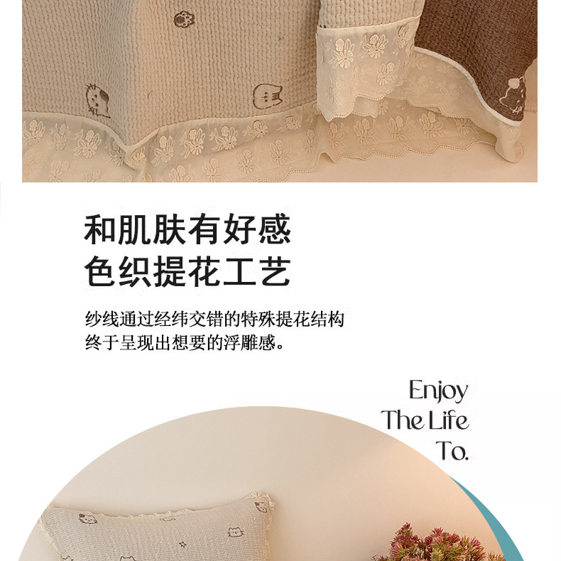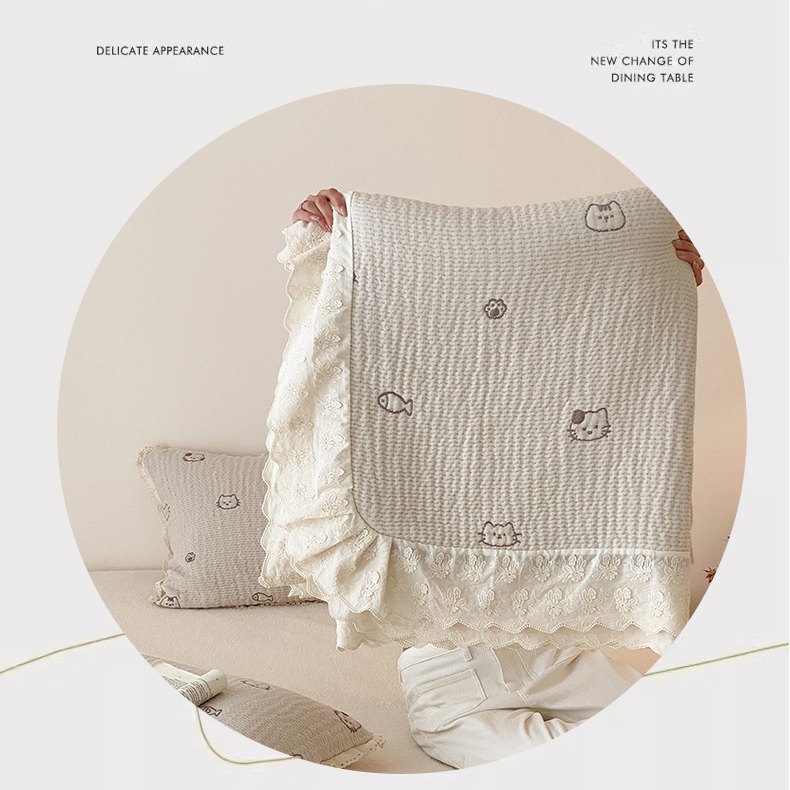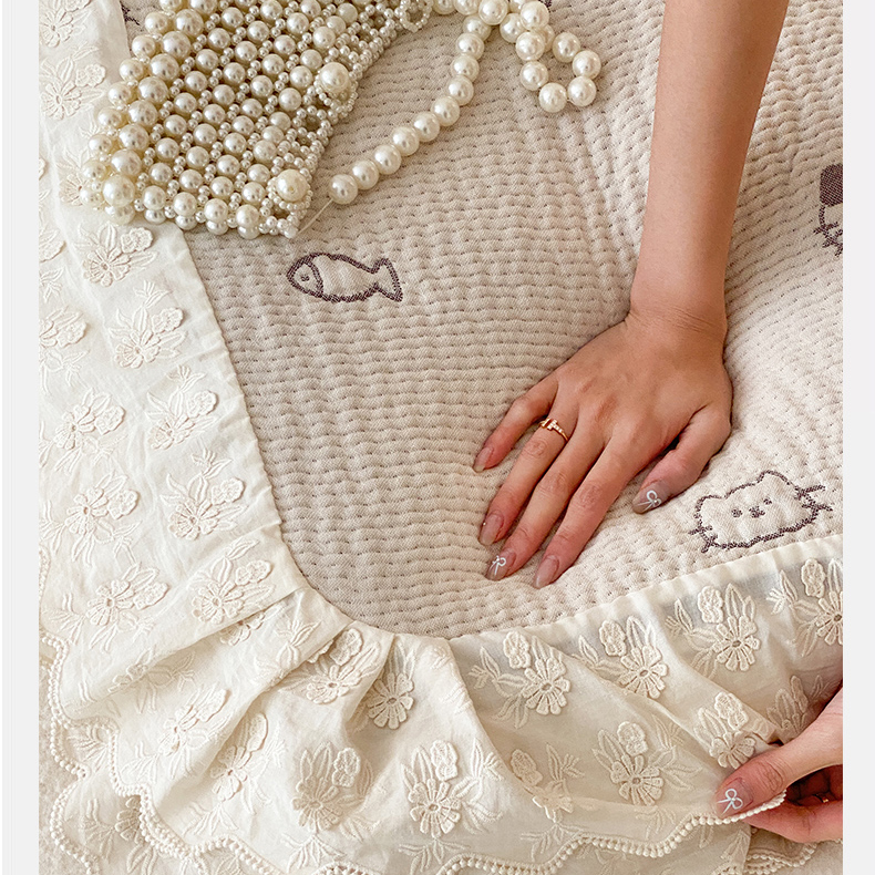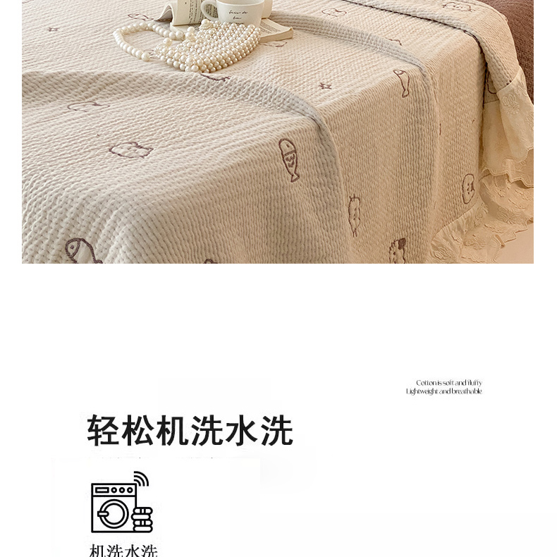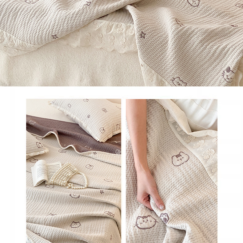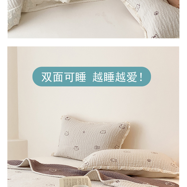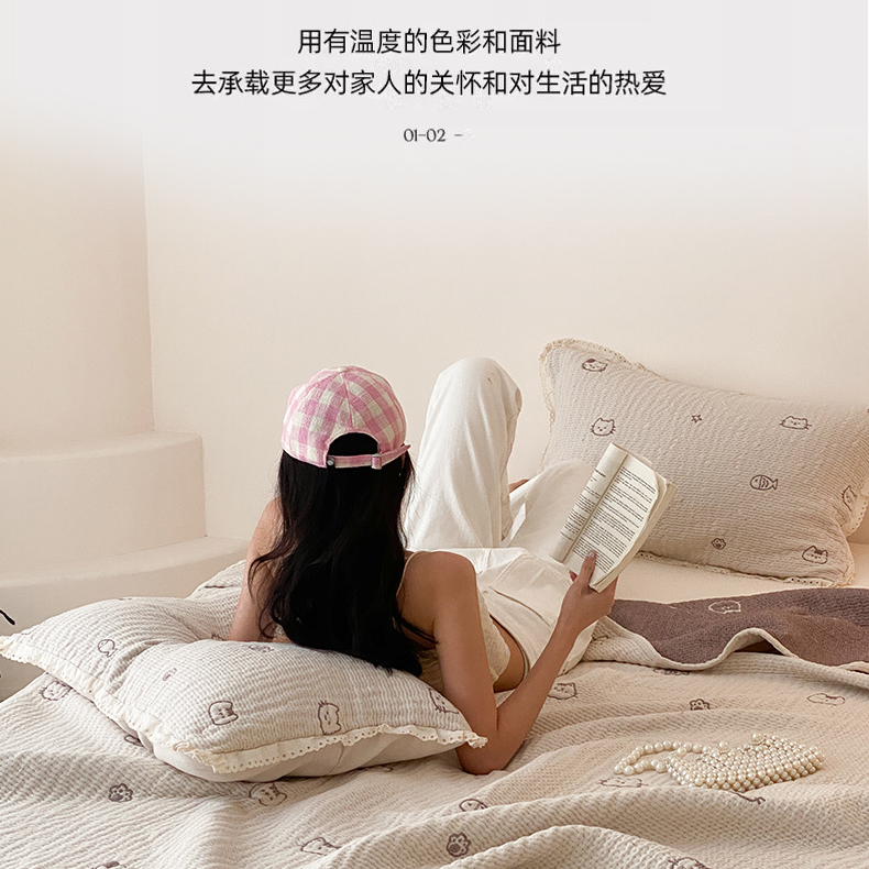 商品名称:麻依 2025新款韩国清新全棉纱布床盖三件套 小猫鱼
