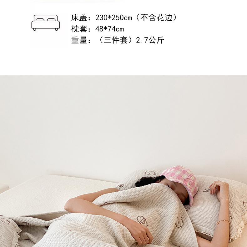 (总)麻依 2025新款韩国清新全棉纱布床盖三件套,憨憨熊,彩色南瓜,车厘子,两颗草莓,奶盖KT,奶油波点-灰,奶油彩点,水蓝KT,水墨花,丝带,桃心-米白,小猫鱼