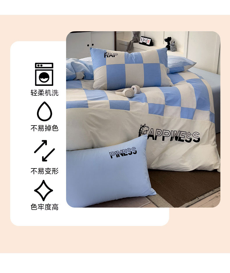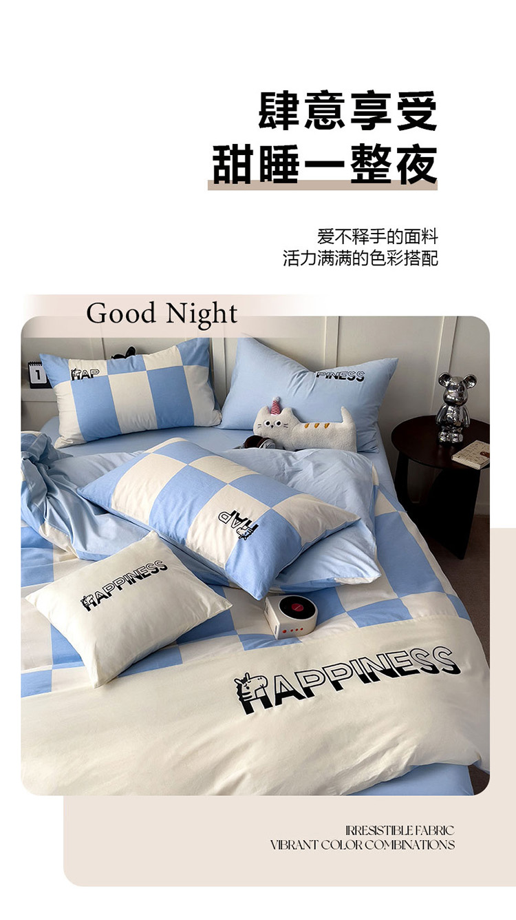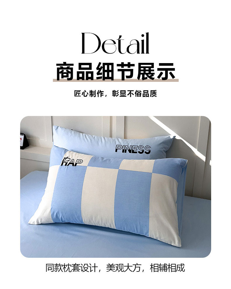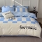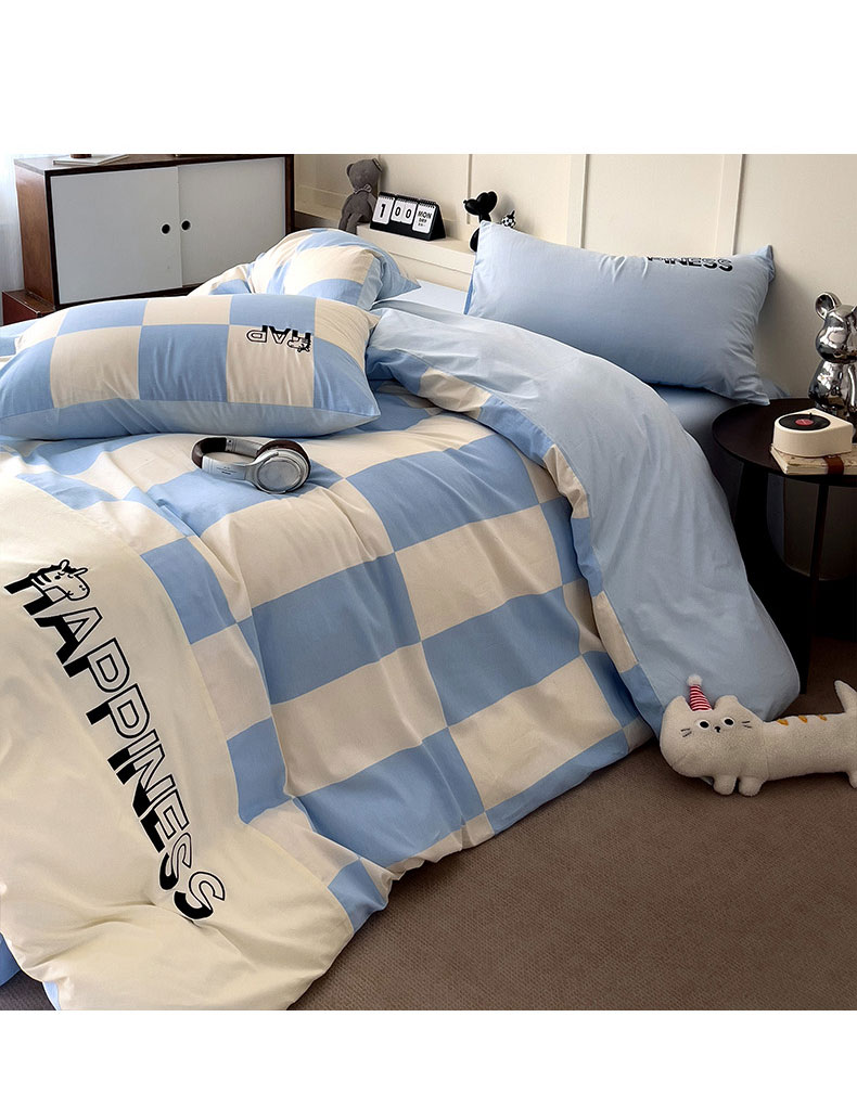 商品名称:娜娜 2025新款全棉拼接条纹绣花四件套 马克-格子蓝