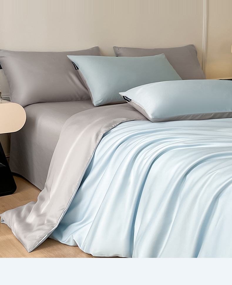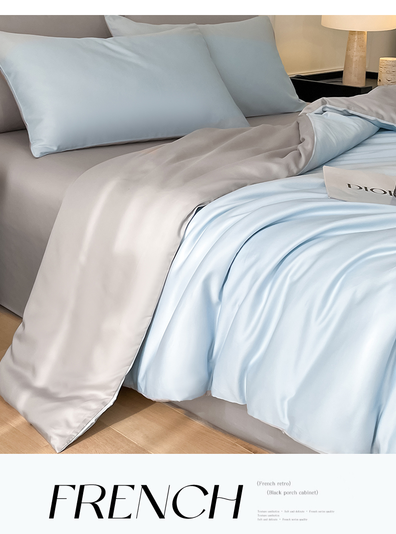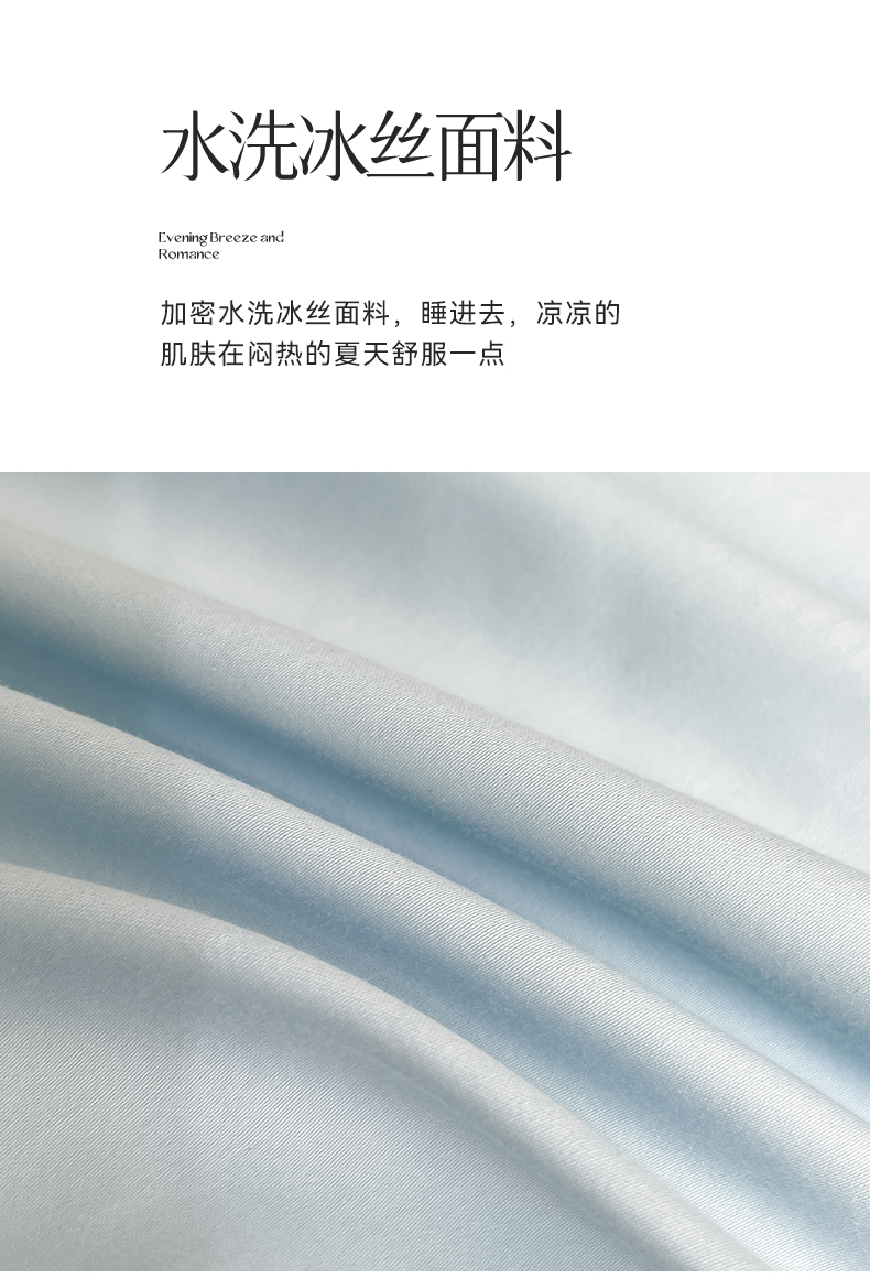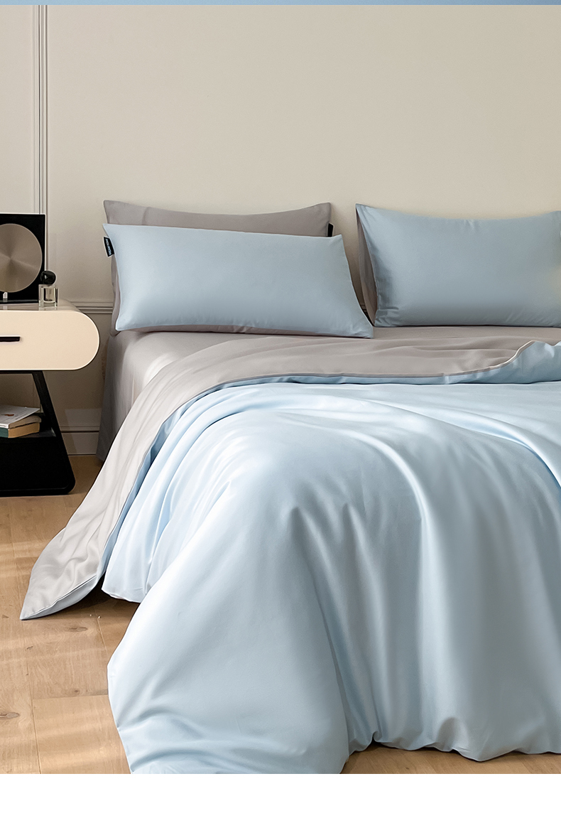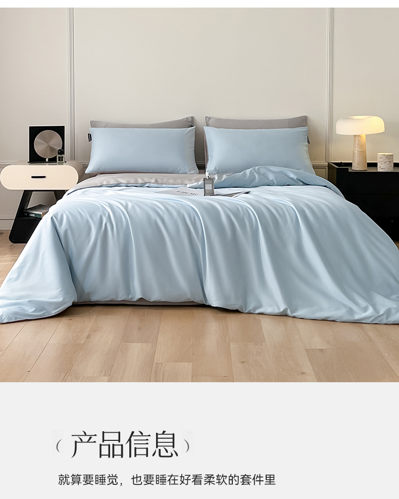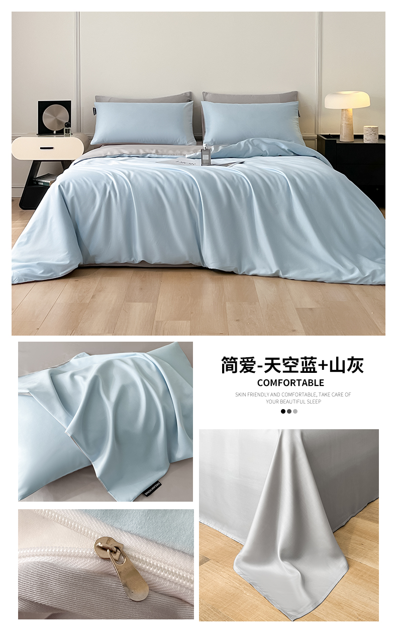 商品名称:笙意家纺 2025新款水洗真丝简约时尚四件套-简爱系列 简爱-天空蓝+山灰