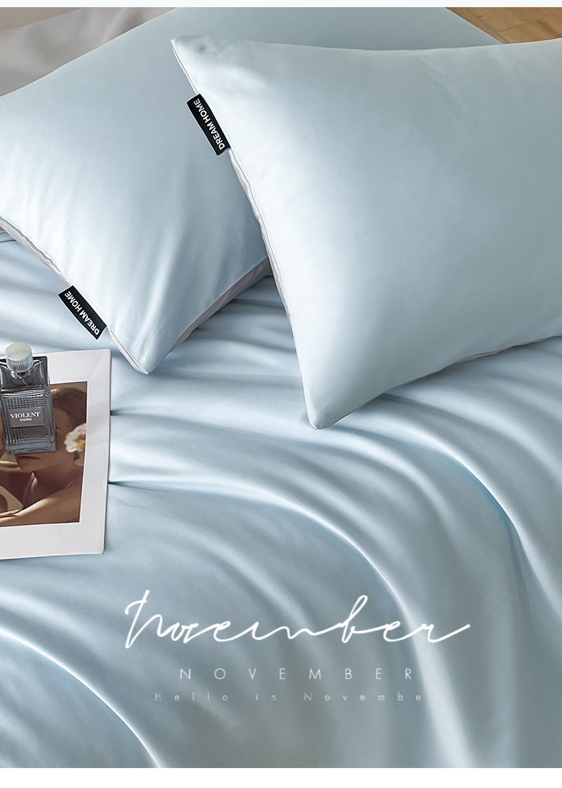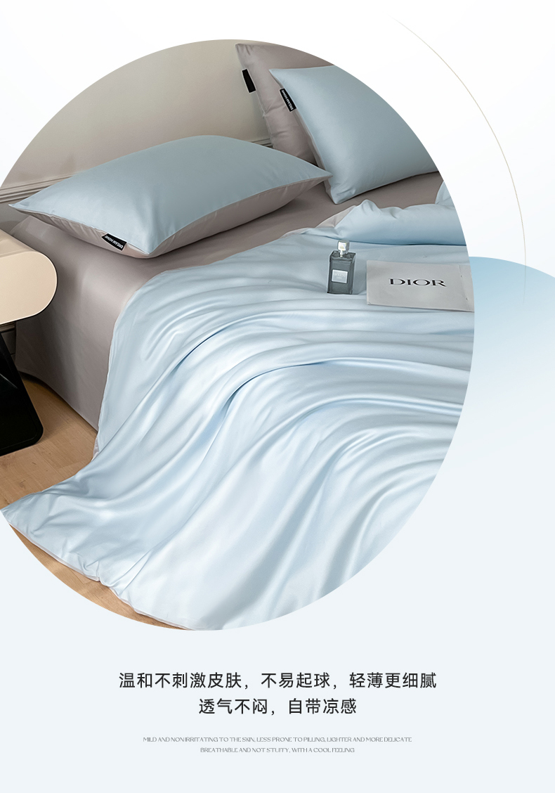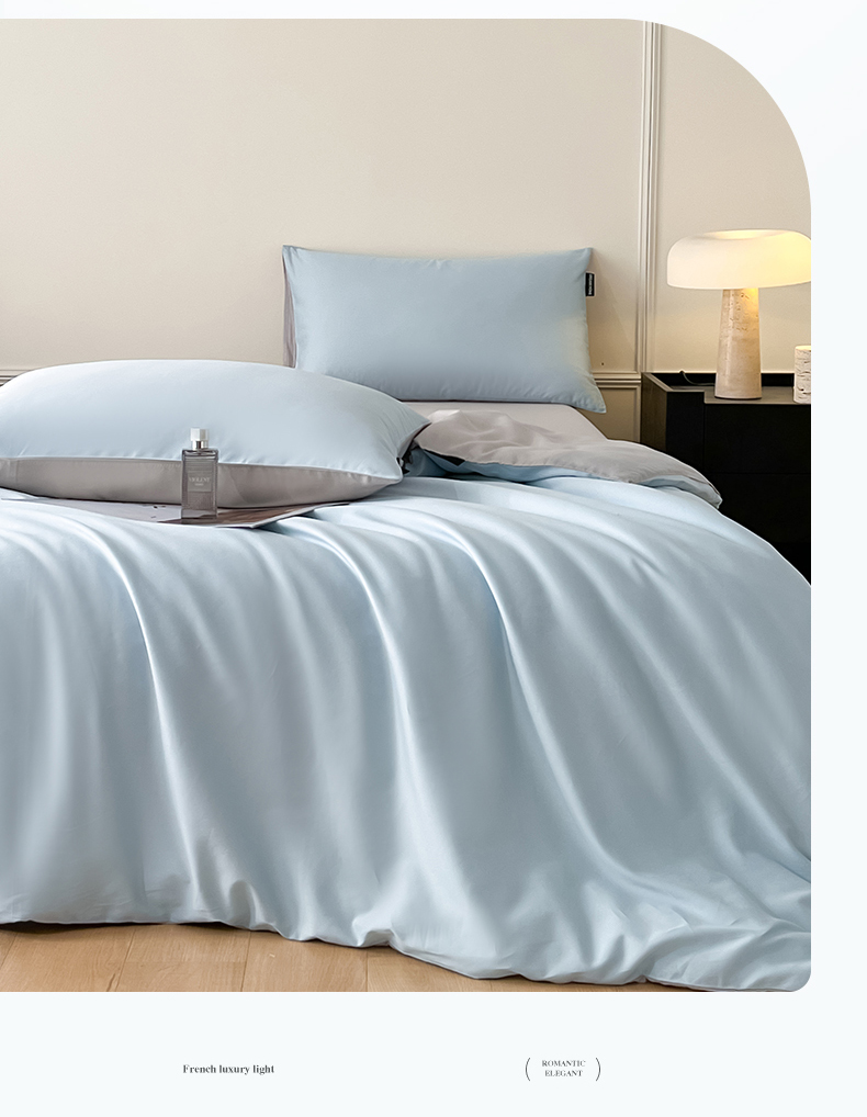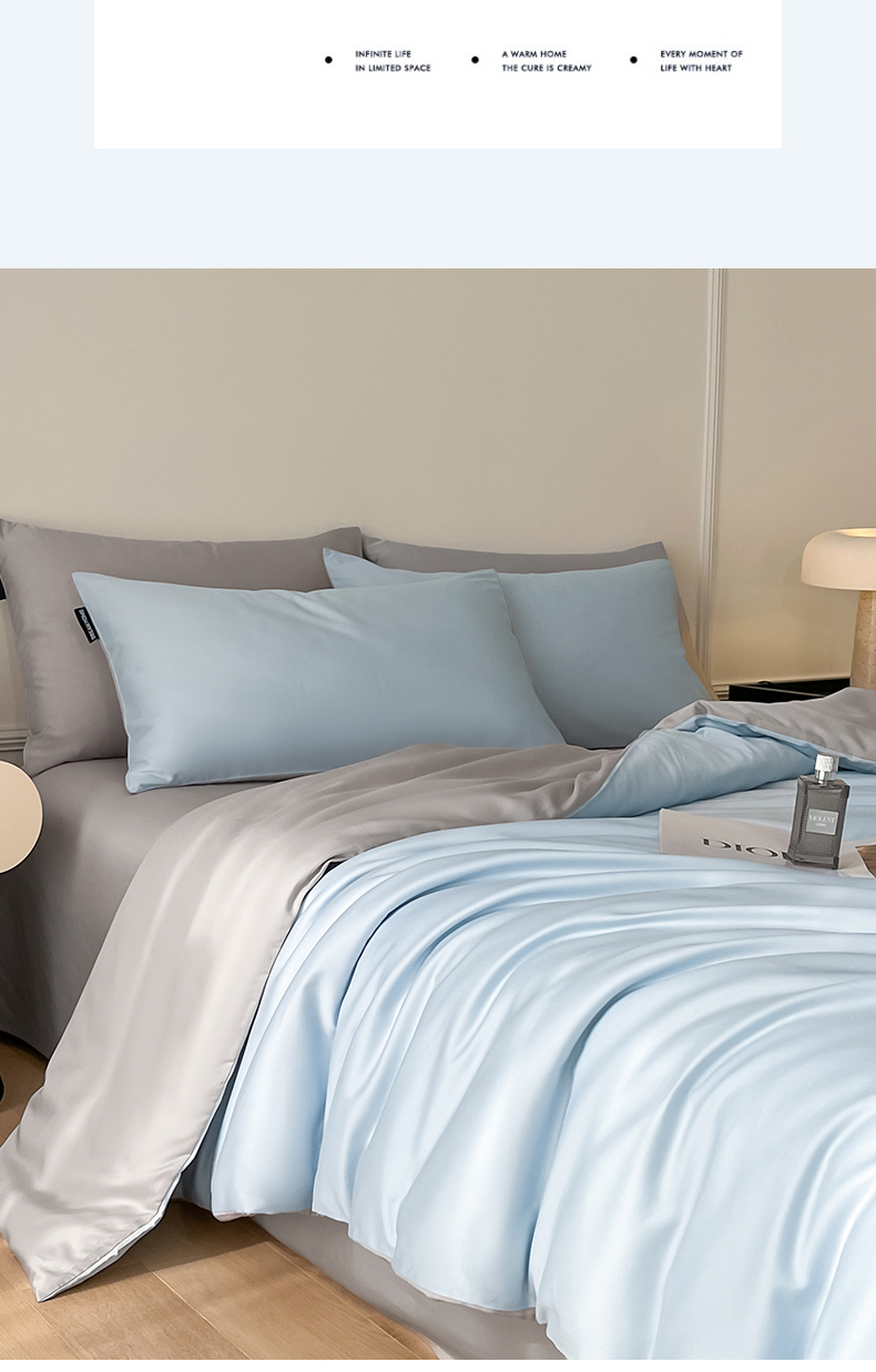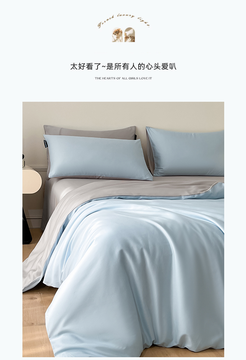 笙意家纺 2025新款水洗真丝简约时尚四件套-简爱系列 简爱-天空蓝+山灰