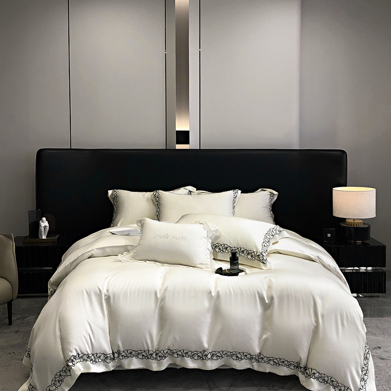 时亿家居 2025新款60支天丝绣花四件套-梦怡系列 梦怡 白