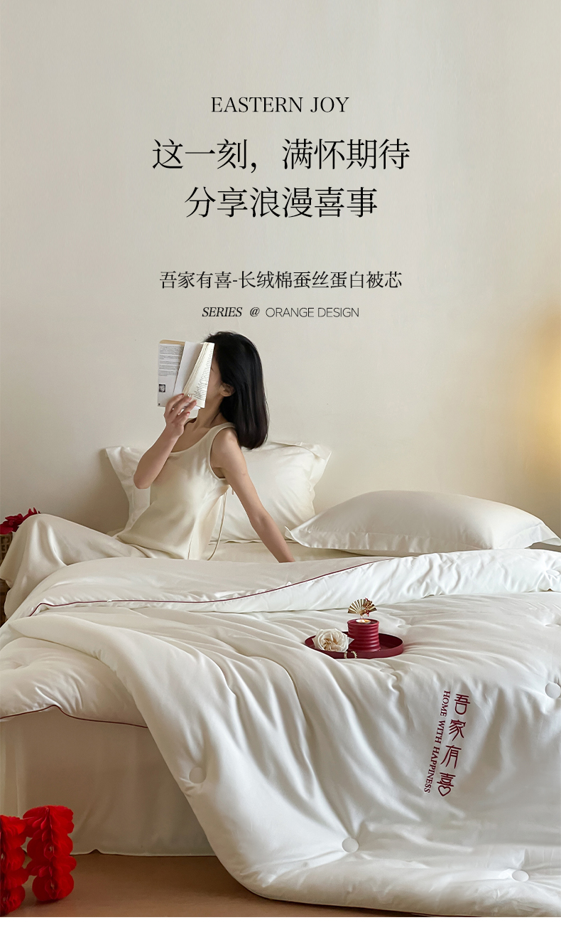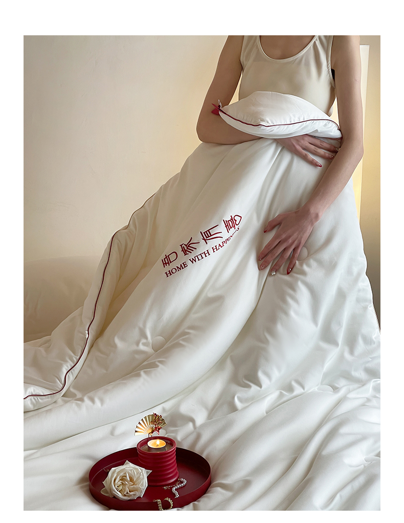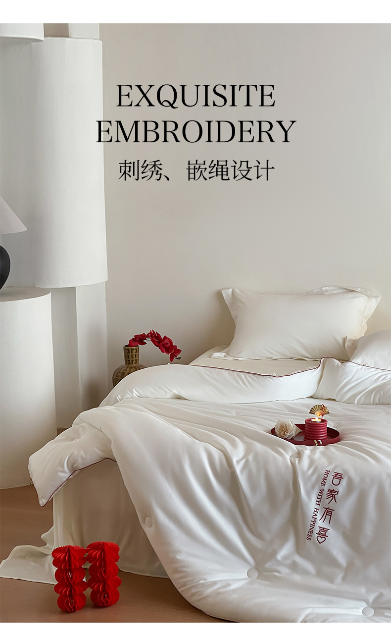 佳汐蓝 2025新款60S长绒棉刺绣婚嫁被-吾家有喜 吾家有喜-珍珠白