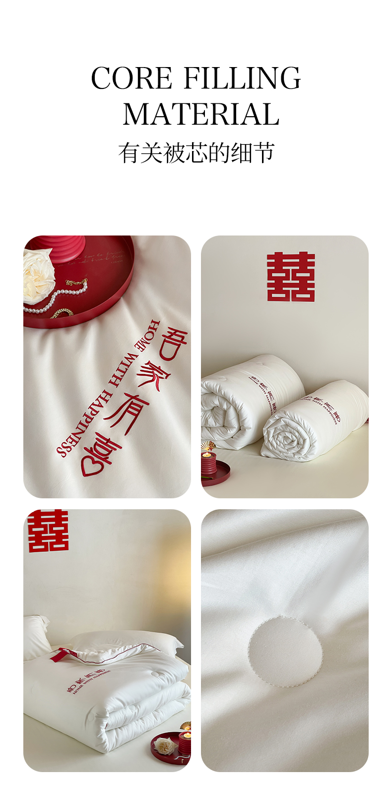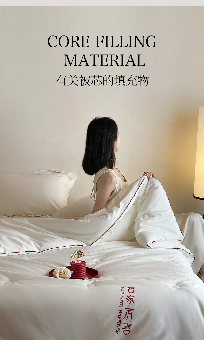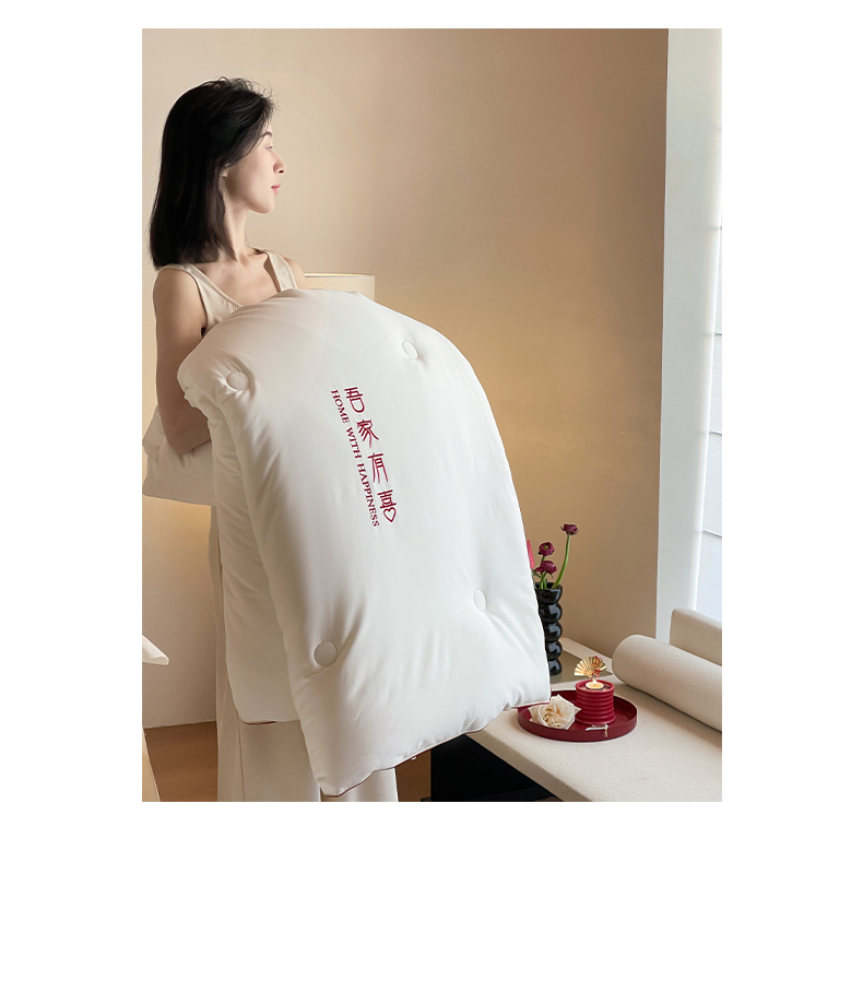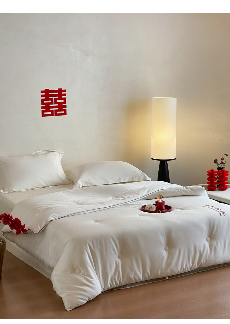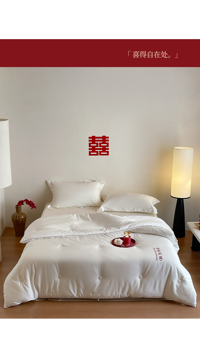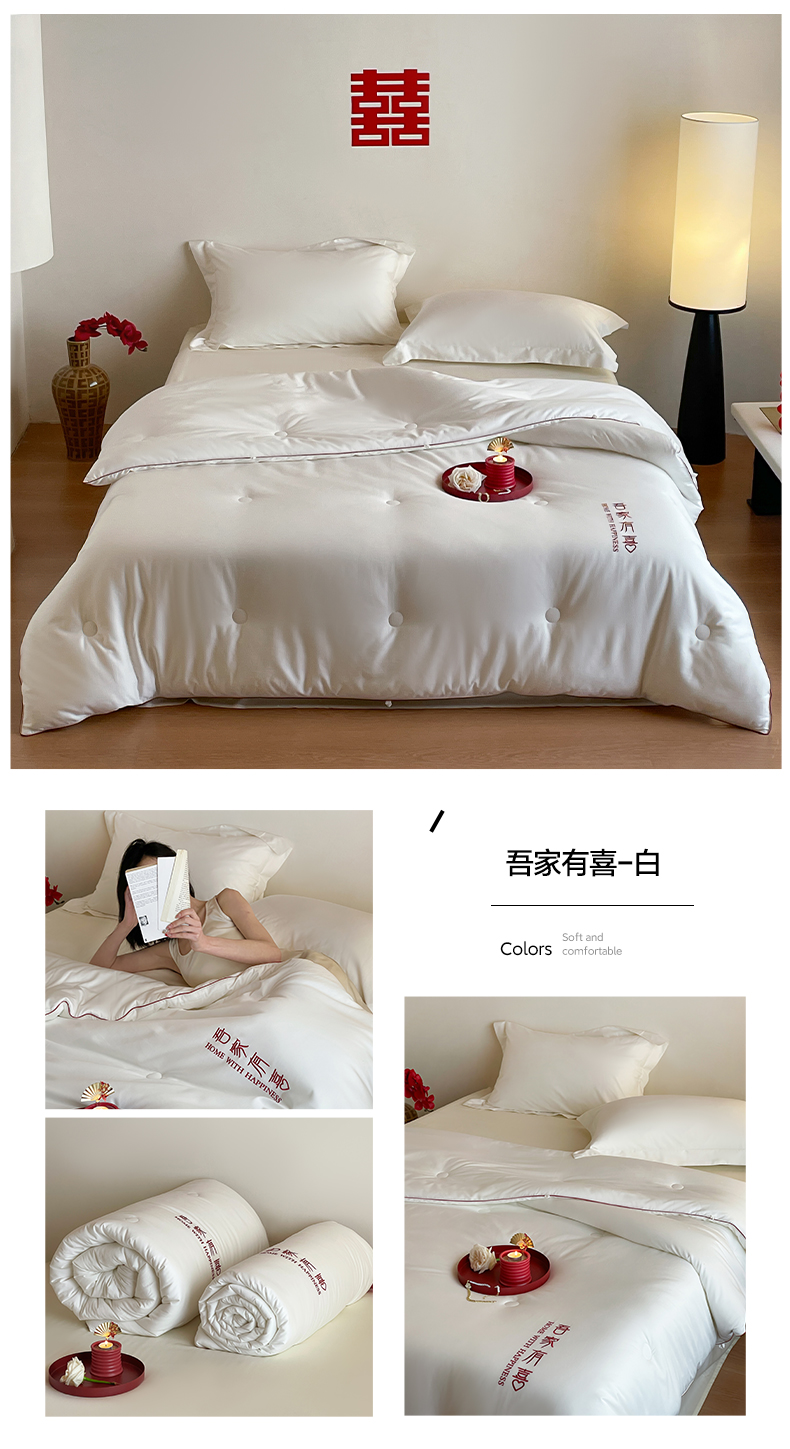 商品名称:佳汐蓝 2025新款60S长绒棉刺绣婚嫁被-吾家有喜 吾家有喜-珍珠白