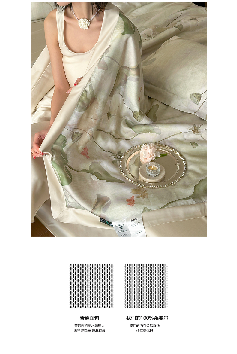 (总)佳汐蓝家纺 2025新款60S奥地利LF兰精天丝温馨花缘系列四件套,(天丝)温馨花缘-叶绿,(天丝)温馨花缘-珍珠粉,(天丝)温馨花缘-珍珠绿