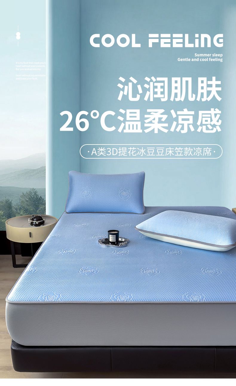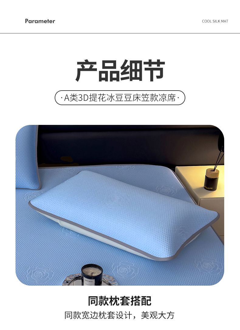 当前位置: 91家纺网 > 商品网购 > 床上用品 > 凉席 > 冰丝席 > 欧邦 2025新款A类3D提花冰豆豆床笠款凉席 床笠款-清雅蓝