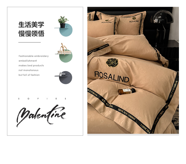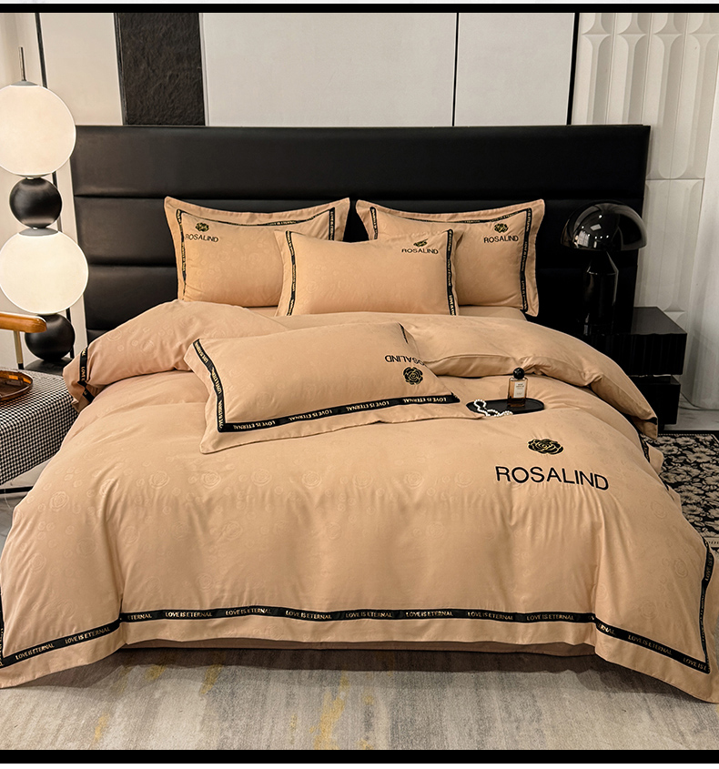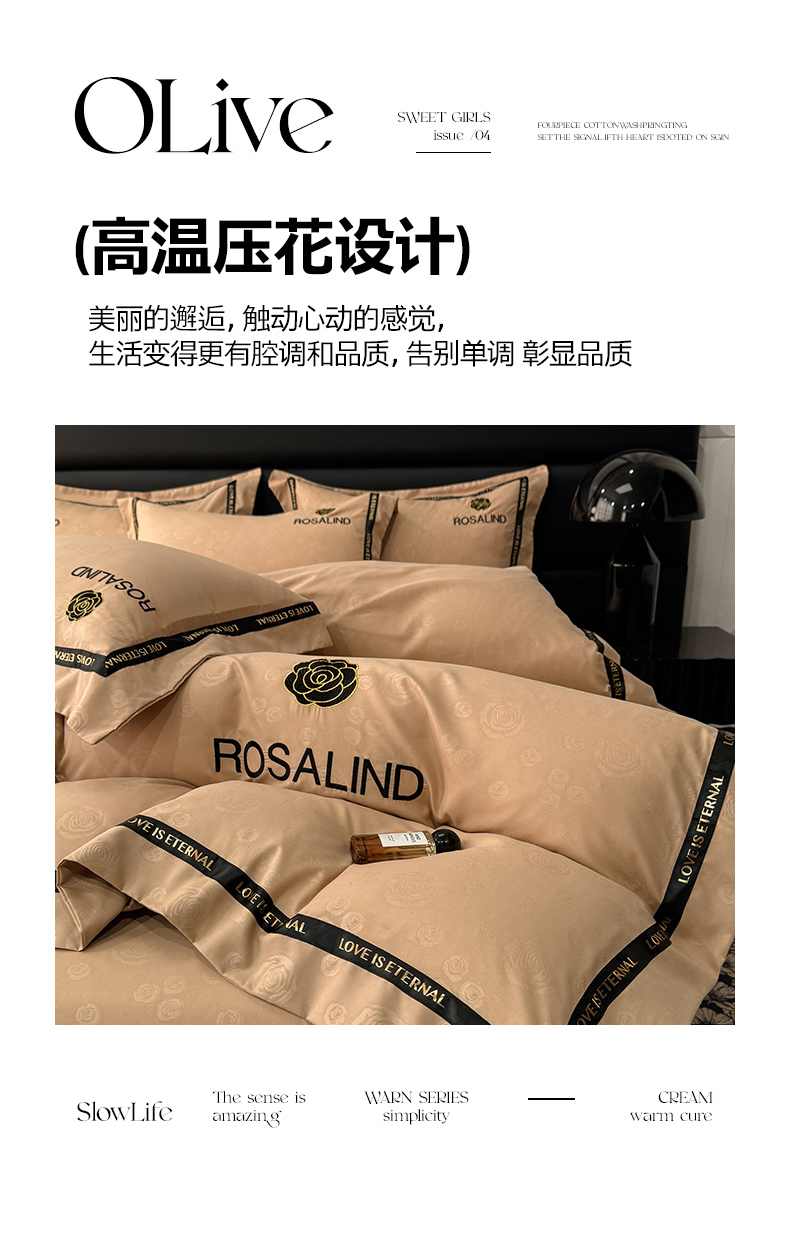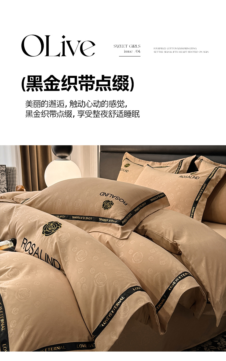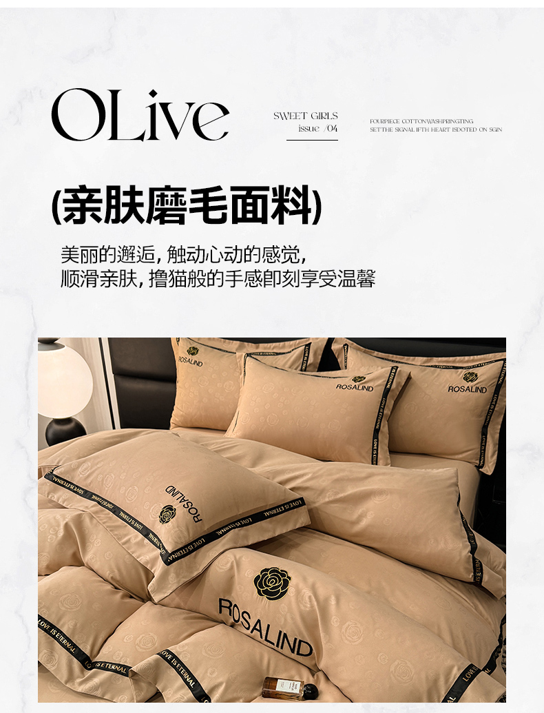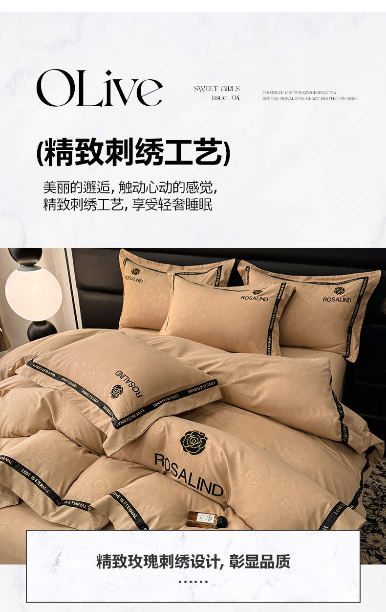 商品名称:2025新款亲肤磨毛刺绣压花四件套--格调系列【提供买家秀】 格调-卡其