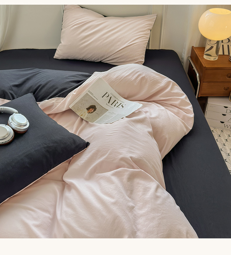 当前位置: 91家纺网 > 商品网购 > 床品套件 > 四件套 > 水洗棉四件套 > 冕悠家纺 2025新款A类105克超柔褶皱水洗棉拼色四件套 藕粉+高级黑
