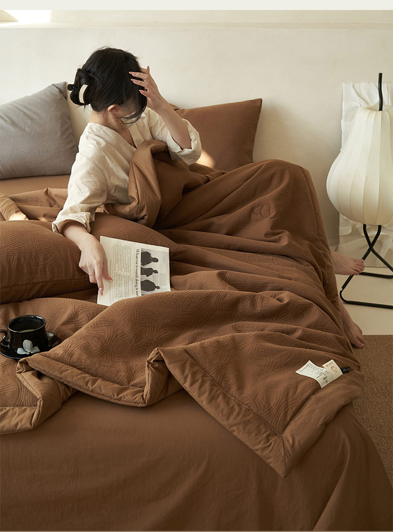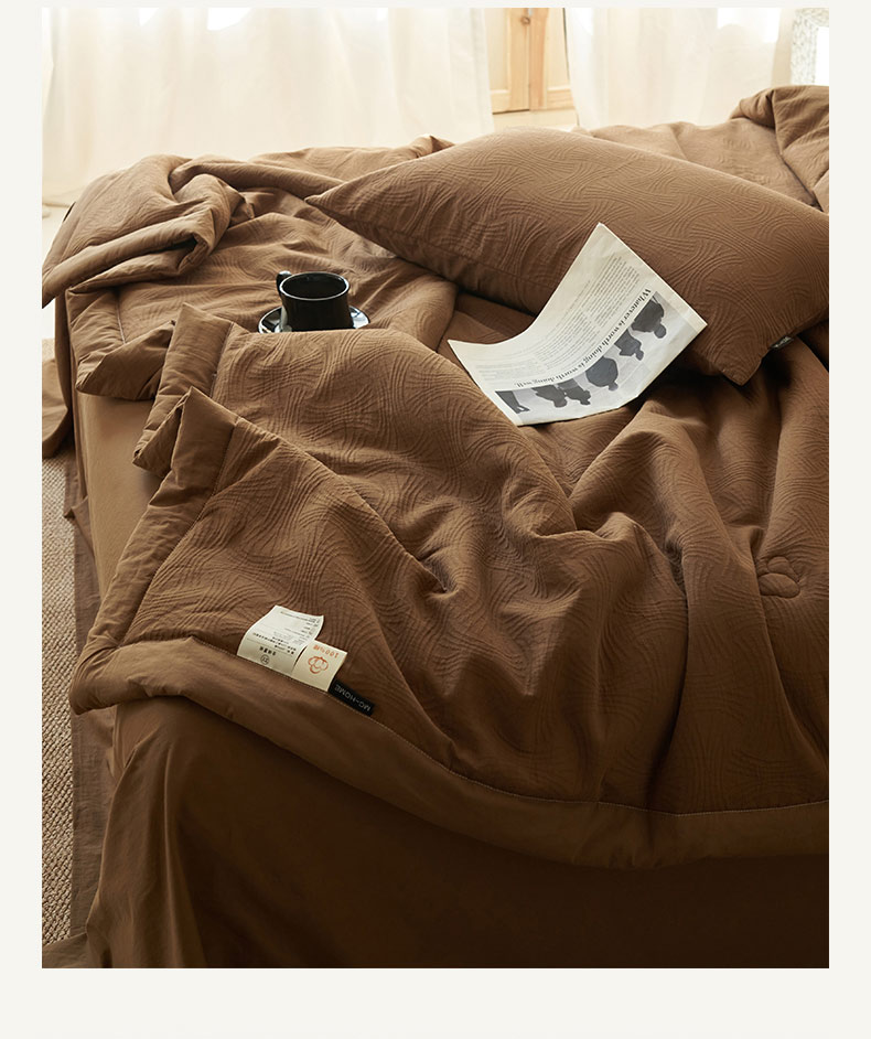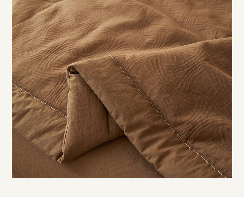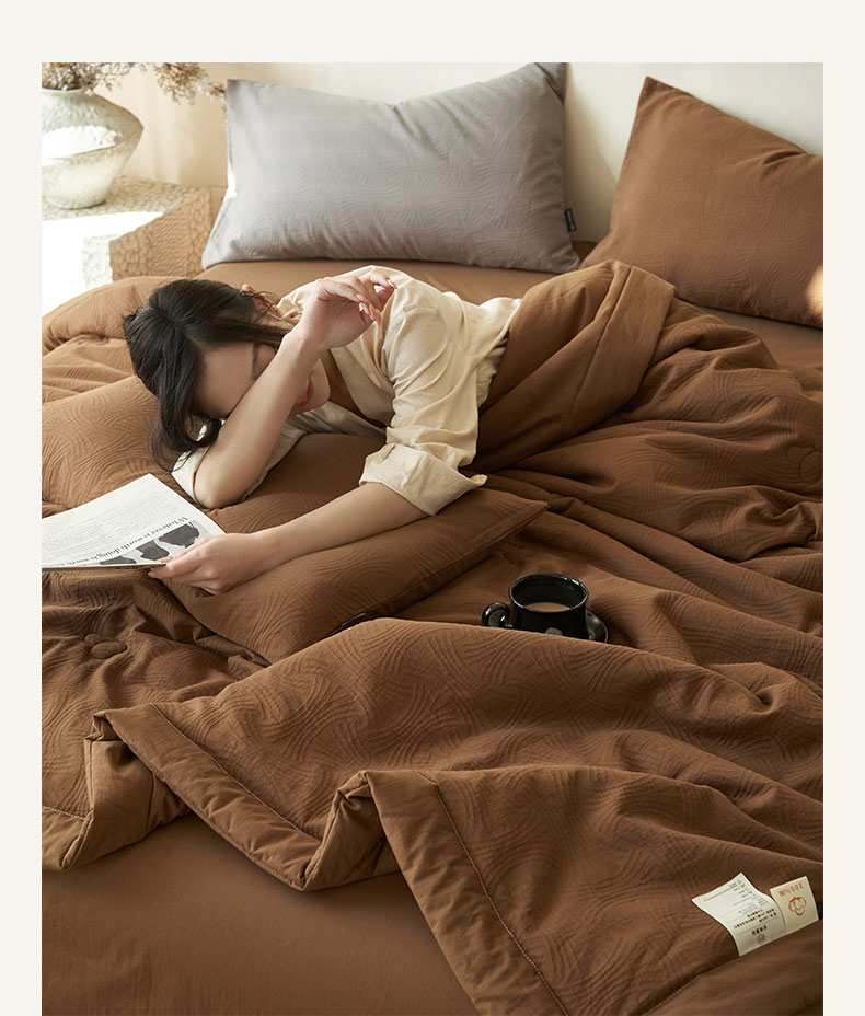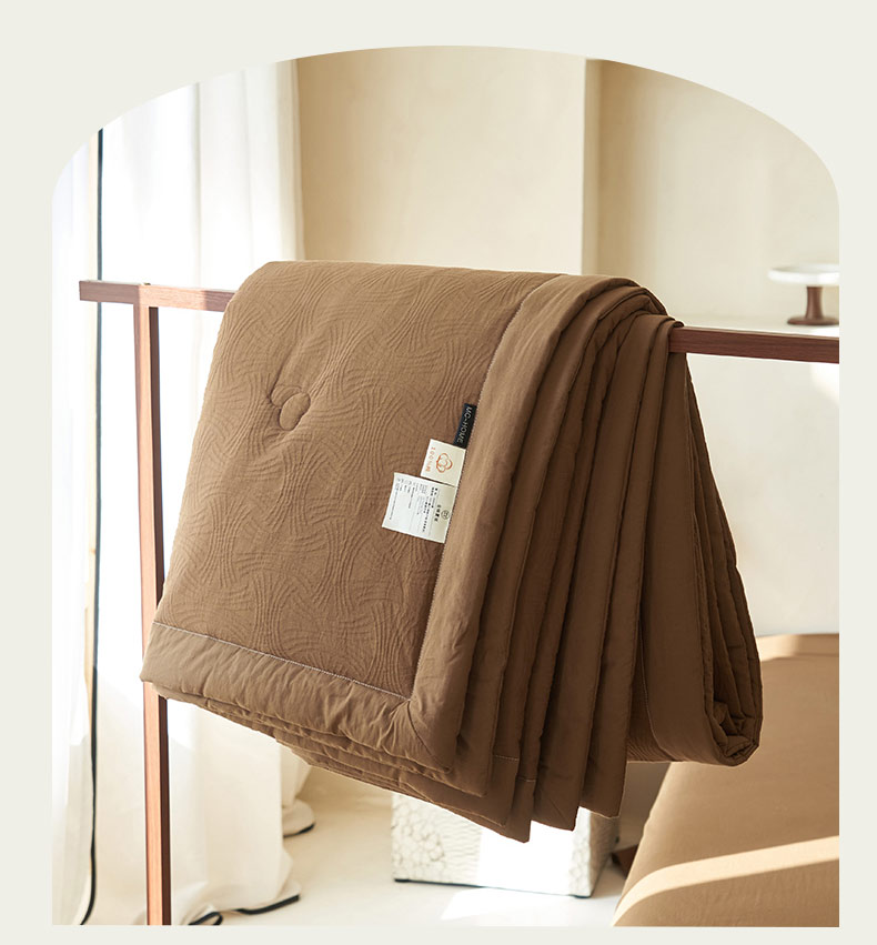 • 91家纺网 家纺一手货源 找家纺 寐绸家纺 2025新款纯棉水洗棉三层提花大豆纤维夏被四件套 线球纹夏被-焦糖