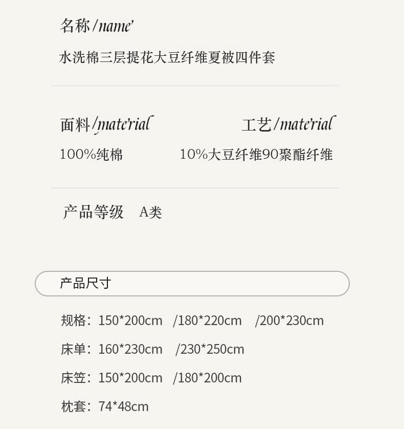 • 适用季节: 空调被/夏凉被