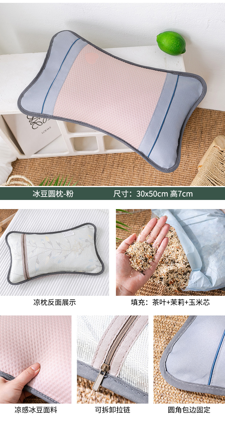 商品名称:2025新款凉感席夏季冰藤枕茶叶枕头凉豆豆席护颈椎竹席枕芯单人冰丝凉枕 冰豆圆枕-粉30x50
