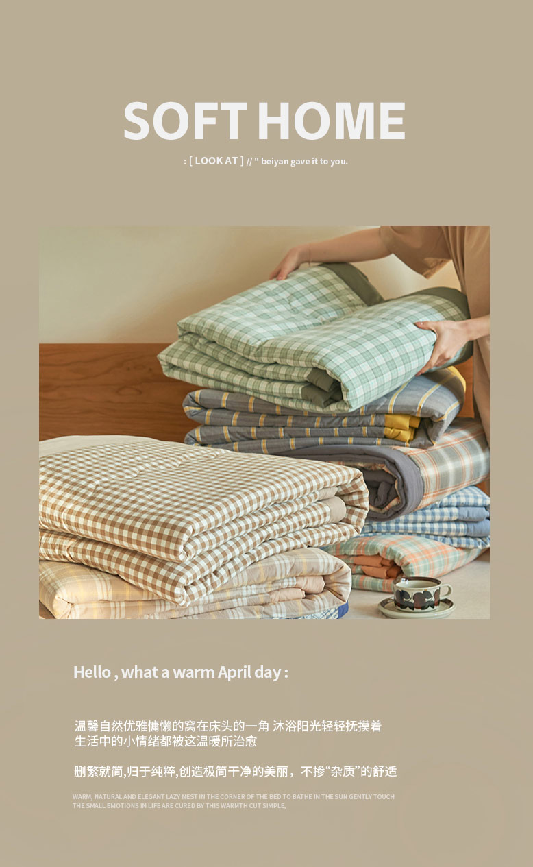 • 91家纺网 家纺一手货源 找家纺 寐绸家纺 2025新款纯棉水洗棉无印风新疆棉花夏被四件套 大灰格