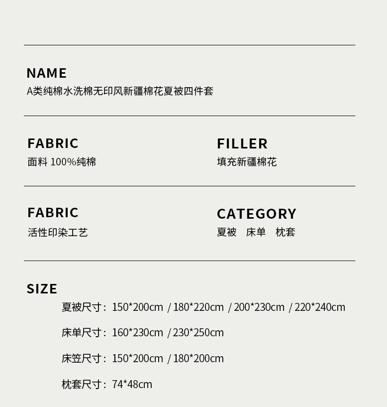 200*230cm夏被 床单款四件套 | ¥130.00 |
