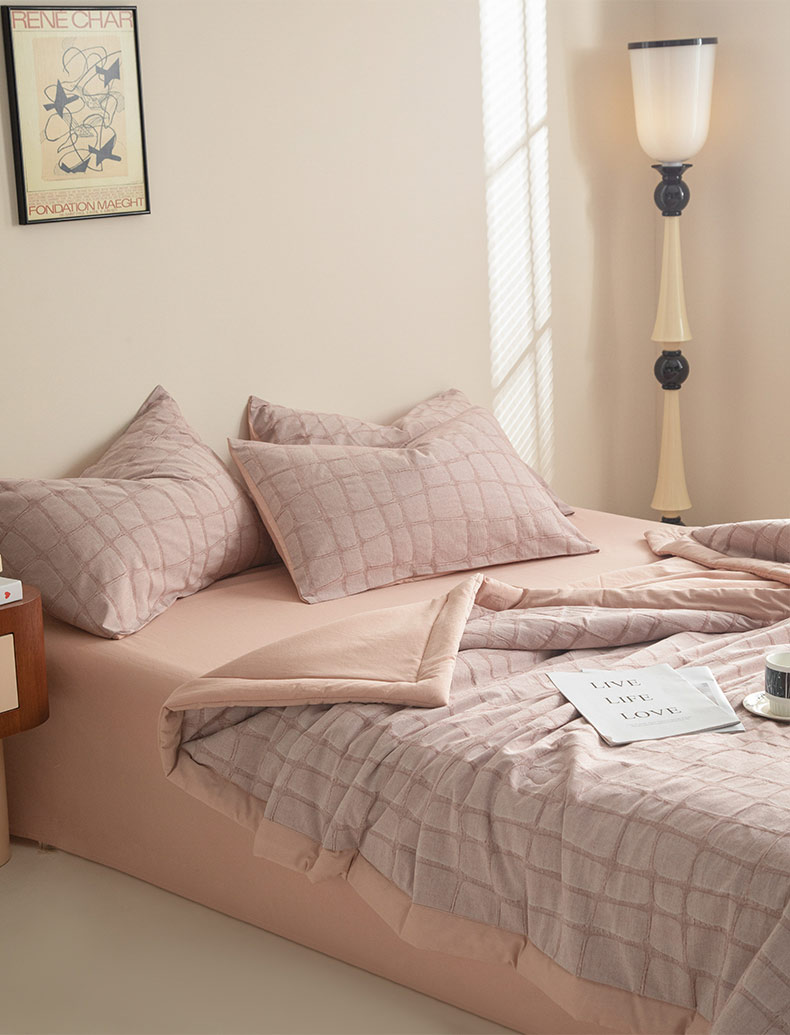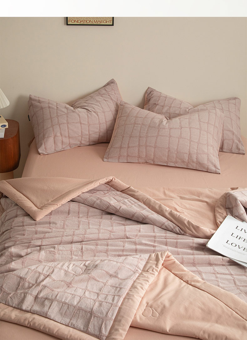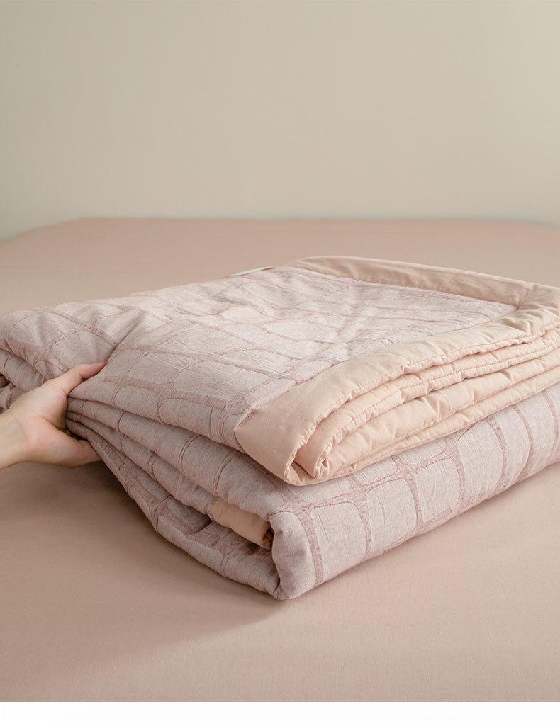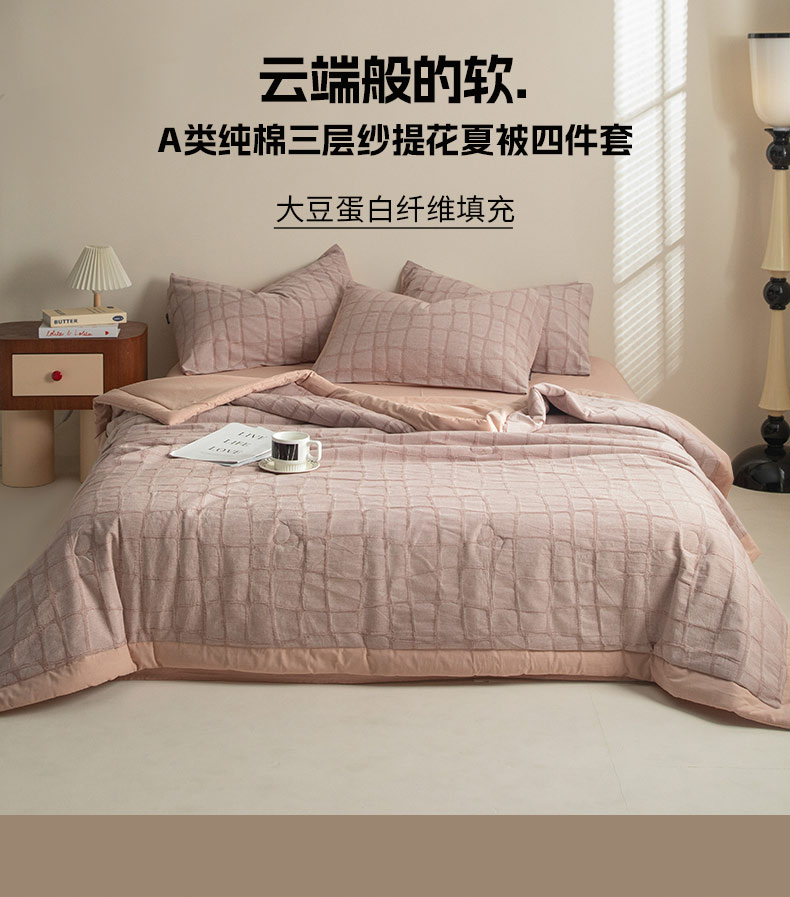 • 91家纺网 家纺一手货源 找家纺 寐绸家纺 2025新款纯棉水洗棉三层石头纹提花大豆纤维夏被四件套 石头纹夏被-浅豆沙