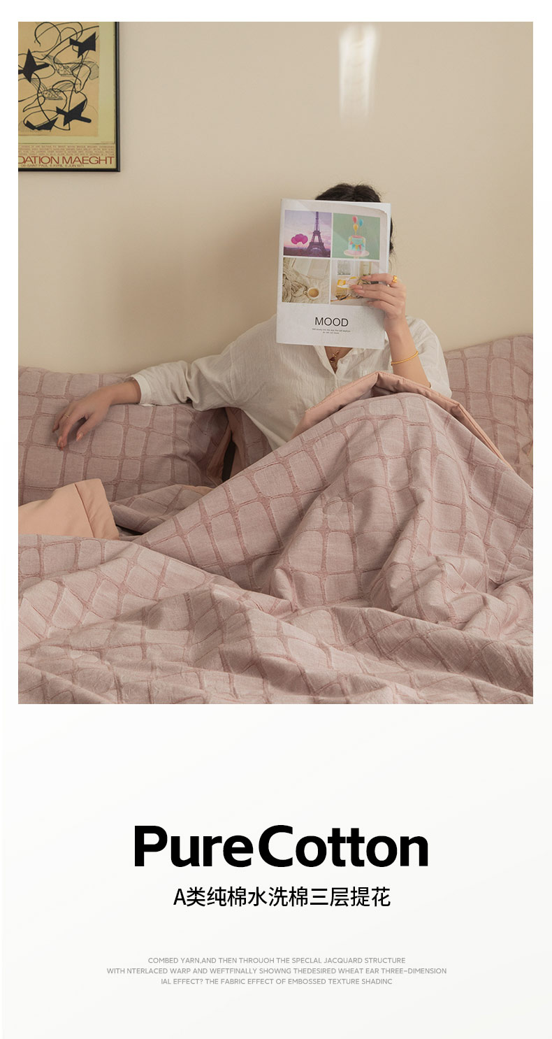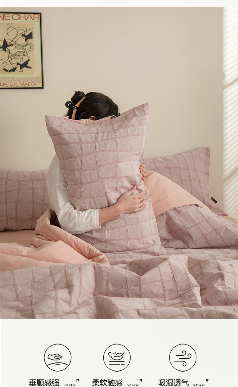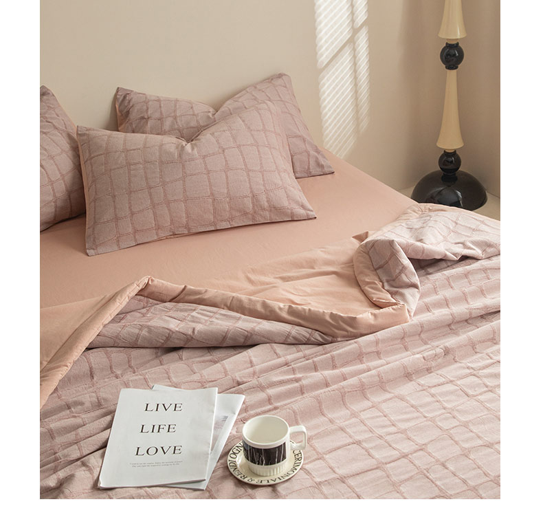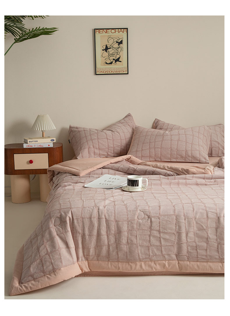 • 91家纺网 家纺一手货源 找家纺 寐绸家纺 2025新款纯棉水洗棉三层石头纹提花大豆纤维夏被四件套 石头纹夏被-浅豆沙
