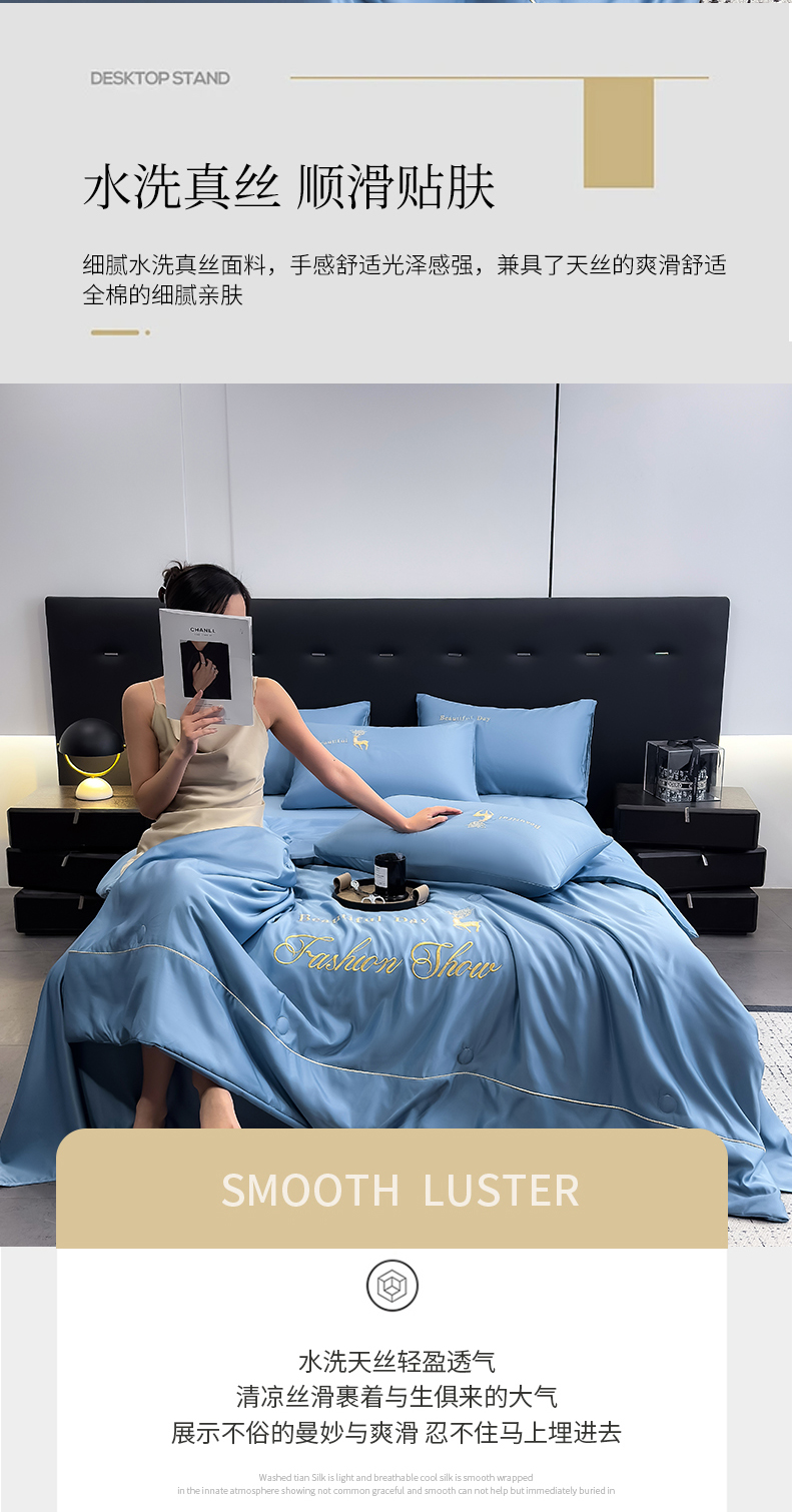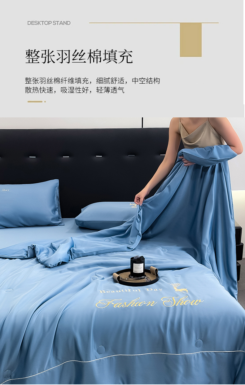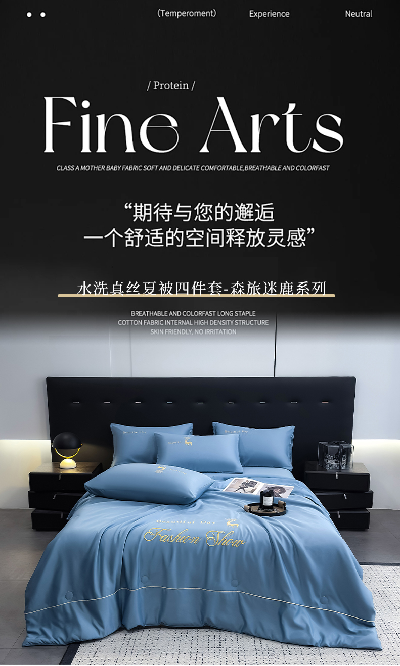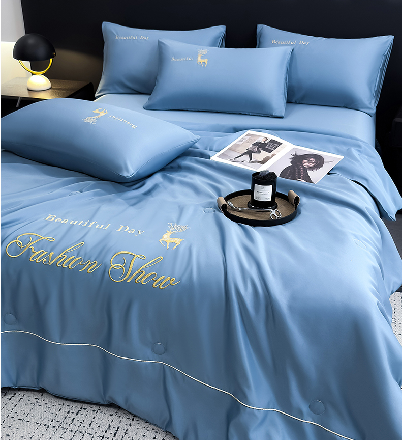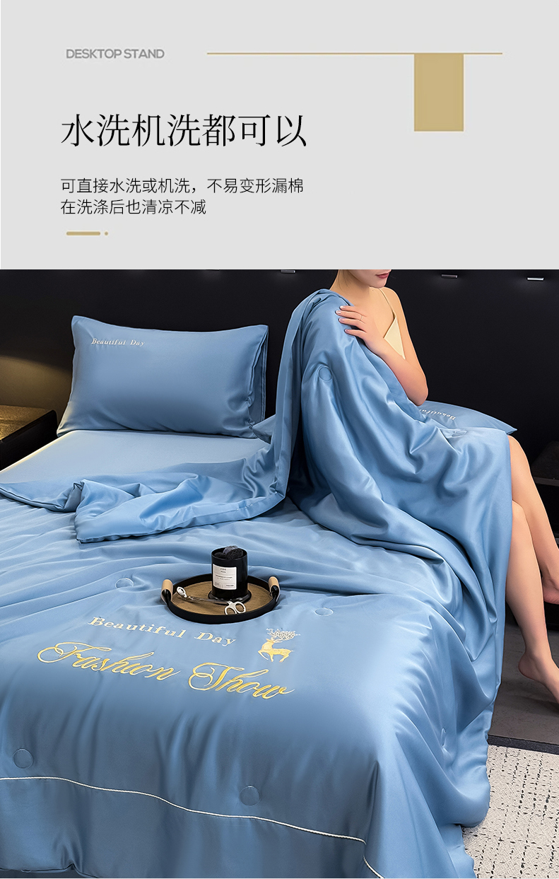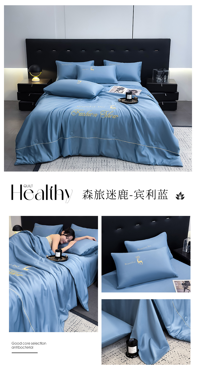 (总)卡罗兰 2025新款水洗天丝夏凉被空调被水洗真丝夏被四件套-森旅迷鹿
