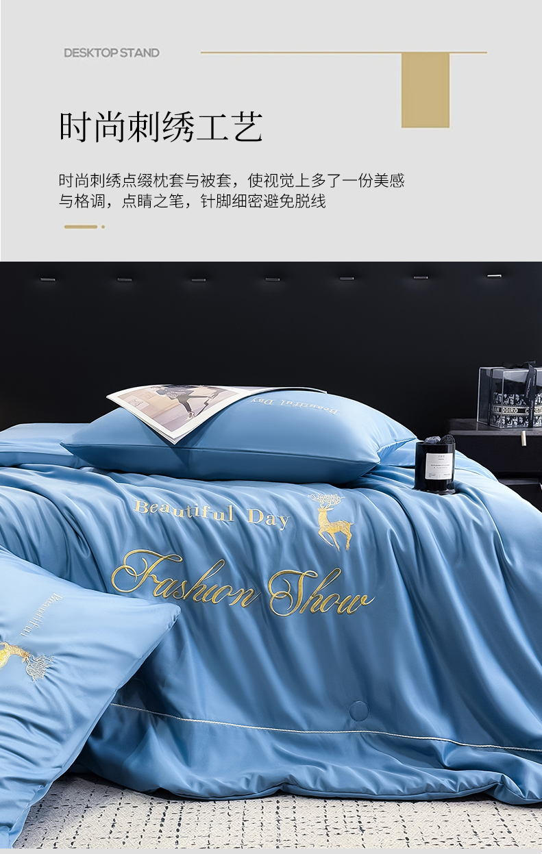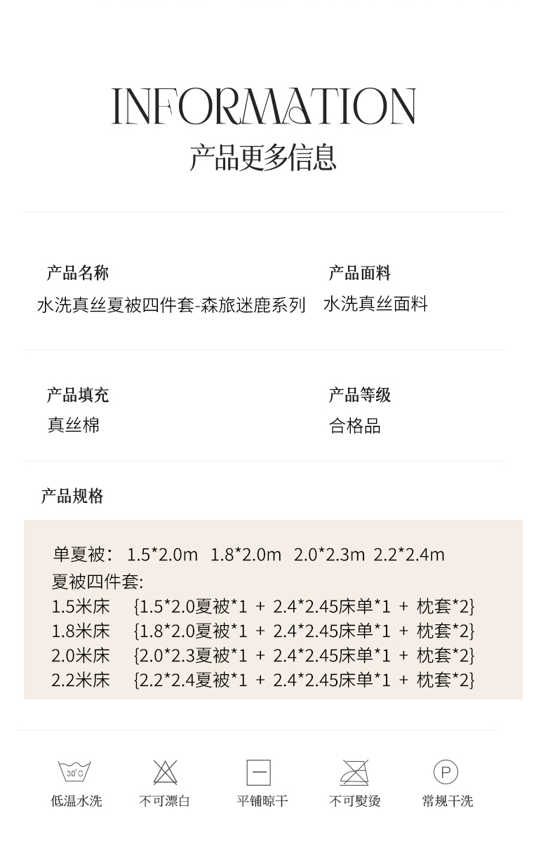 商品名称:(总)卡罗兰 2025新款水洗天丝夏凉被空调被水洗真丝夏被四件套-森旅迷鹿