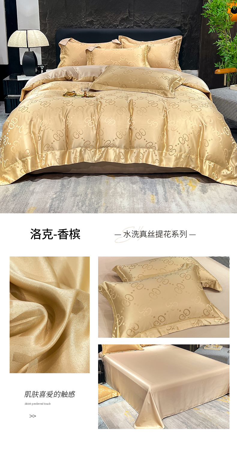(总) 新25 经年2025年 水洗真丝冰丝天丝提花四件套直播爆款 格林系列 ,格林-宝蓝,格林-粉玉,格林-浅灰,格林-天蓝,格林-香槟