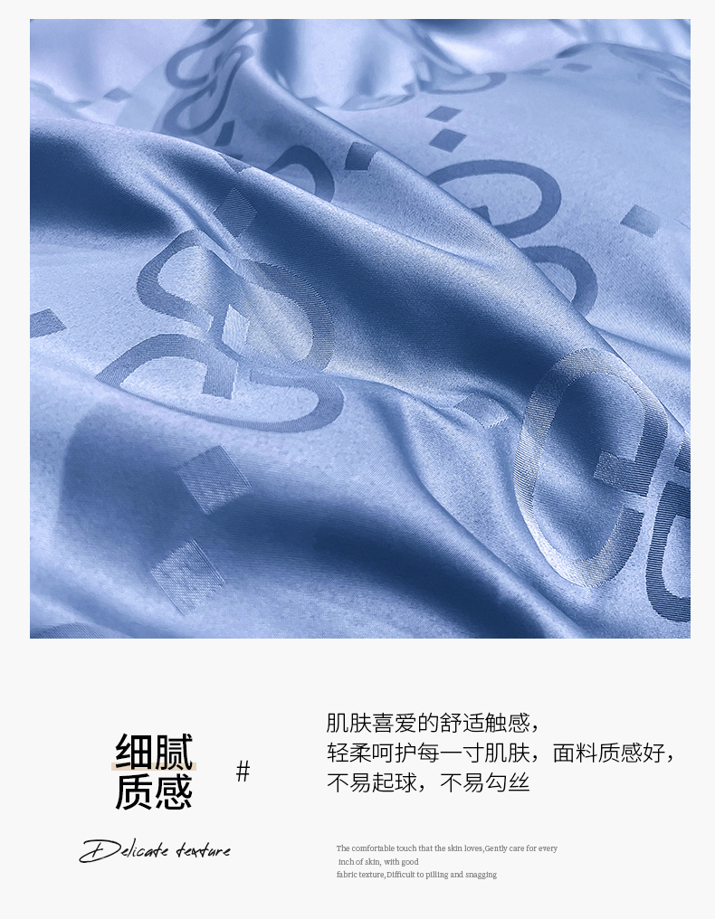 商品名称:经年 2025年水洗真丝冰丝天丝提花四件套 洛克系列 洛克-天蓝