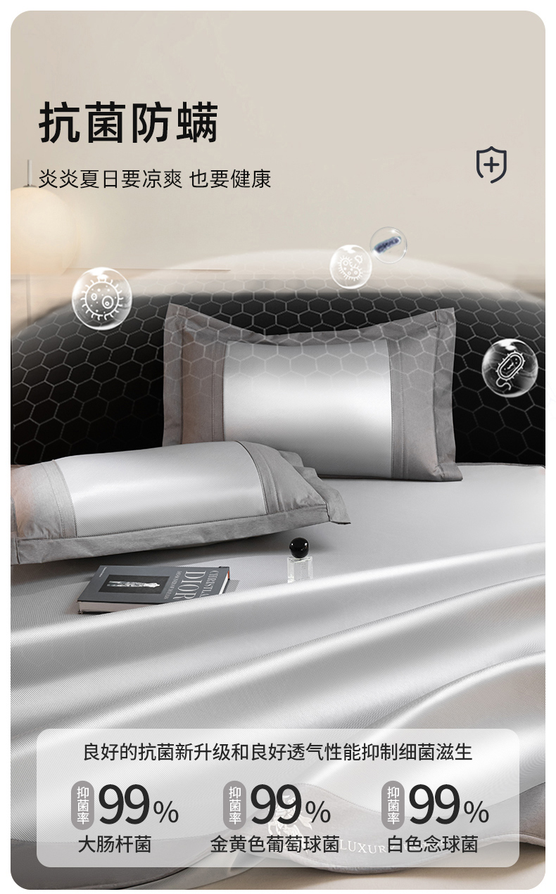 商品名称:孩子王家纺 2025新款轻柔丝凉席冰丝席-文森特系列 床笠款-冰丝蓝
