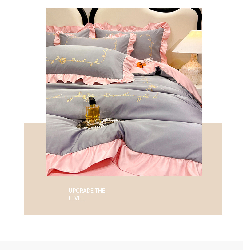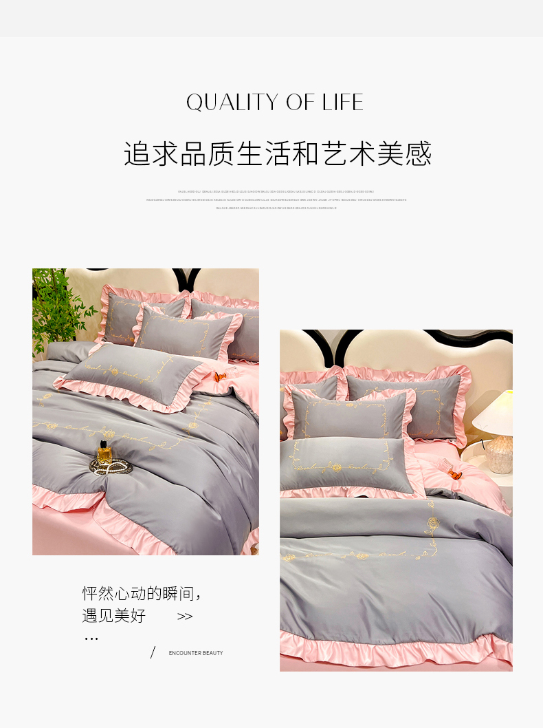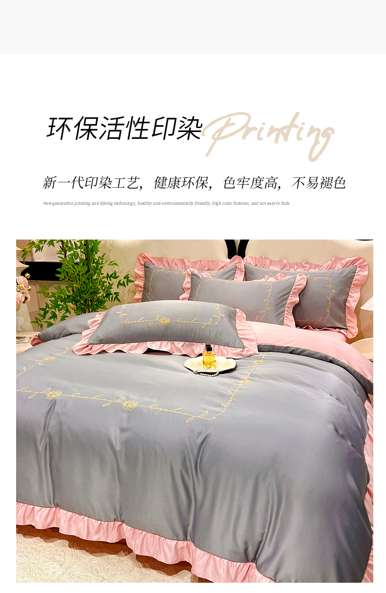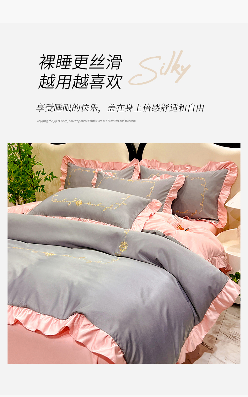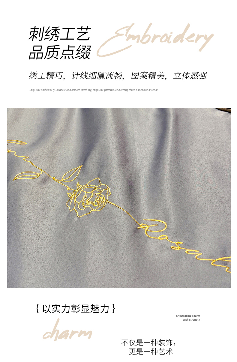 商品名称:经年 2025年水洗真丝冰丝天丝韩版刺绣四件套直播爆款 一世系列 一世-玉灰