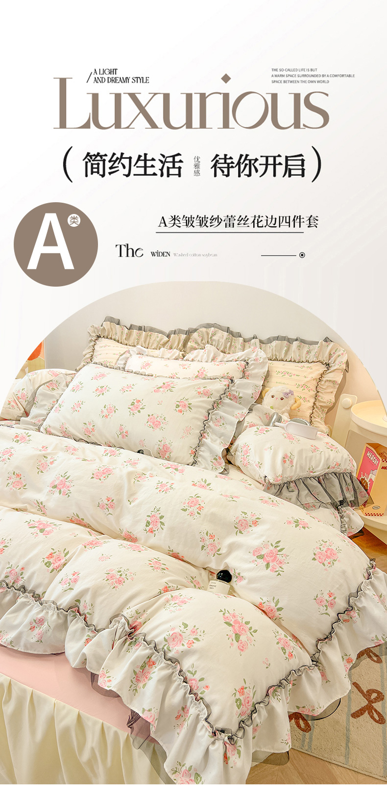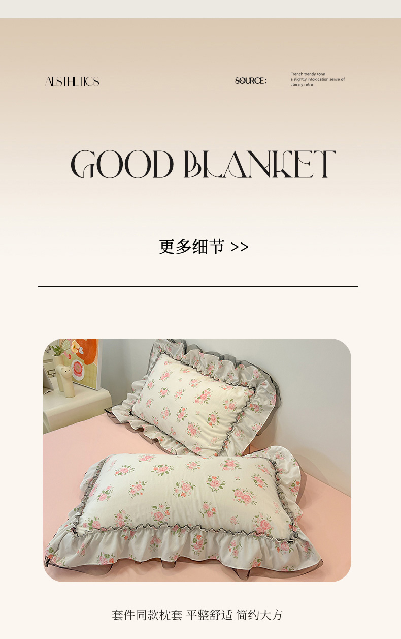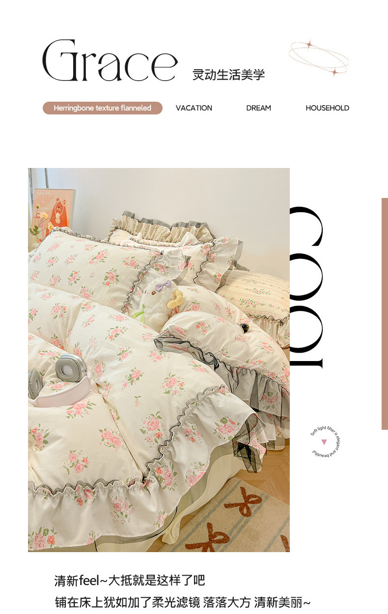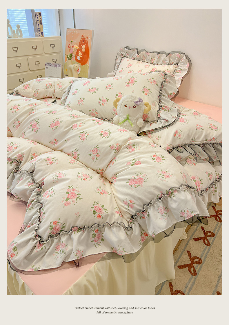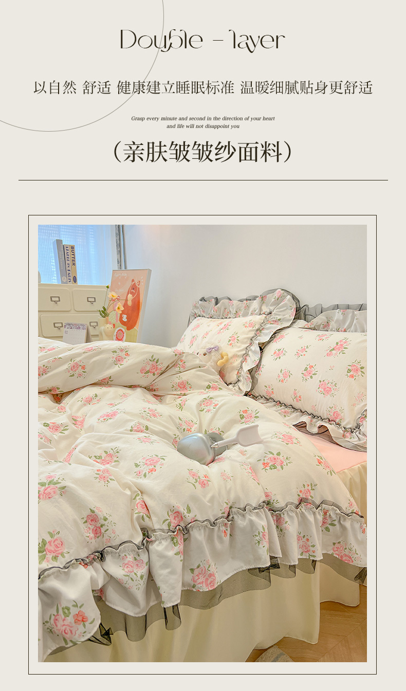 当前位置: 91家纺网 > 商品网购 > 床品套件 > 四件套 > 其它四件套 > 眠帛家居 2025新款A类皱皱纱蕾丝花边四件套 香溢