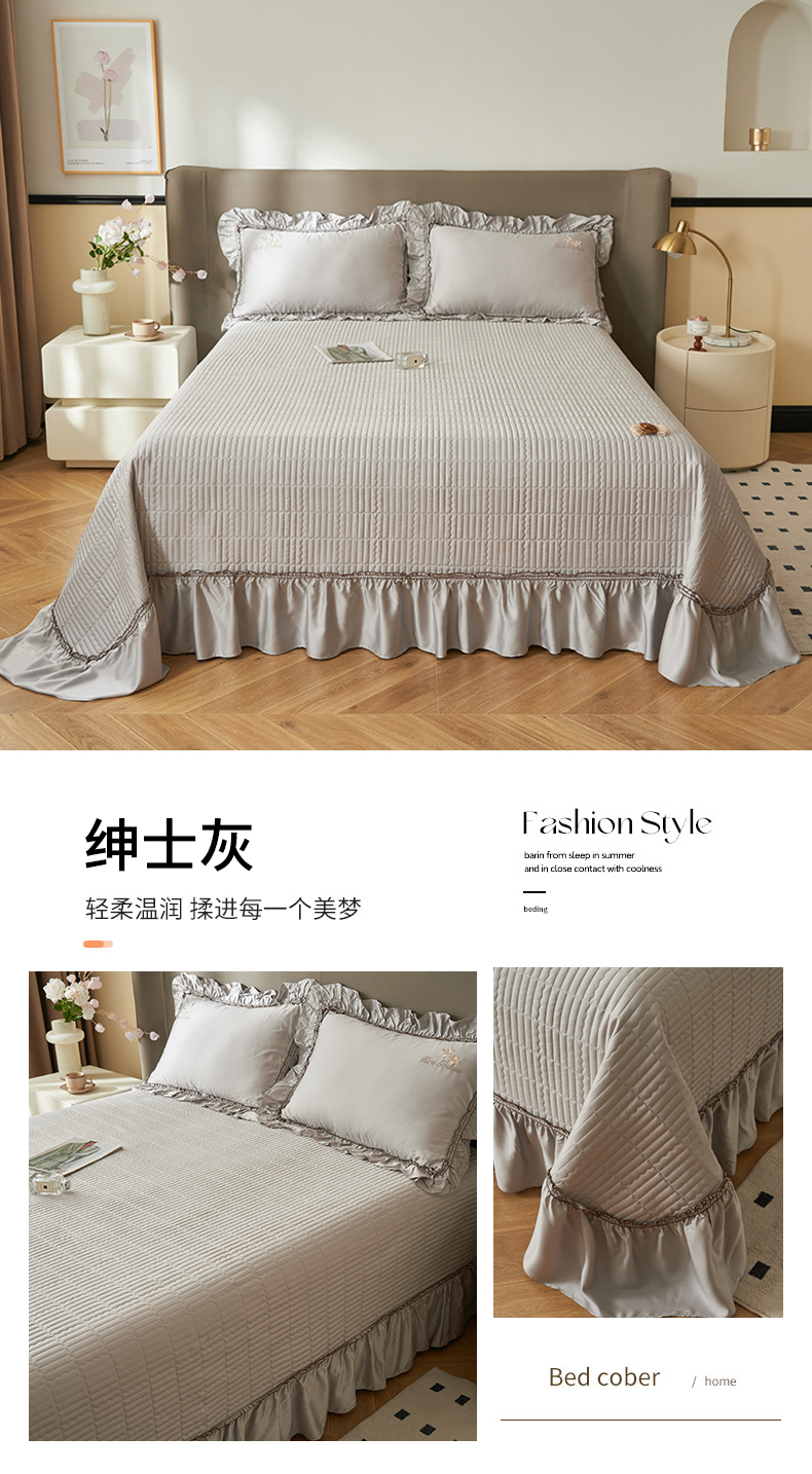 恒爱家纺 2025新款莫代尔柔情似水多功能夏被床盖四件套 绅士灰
