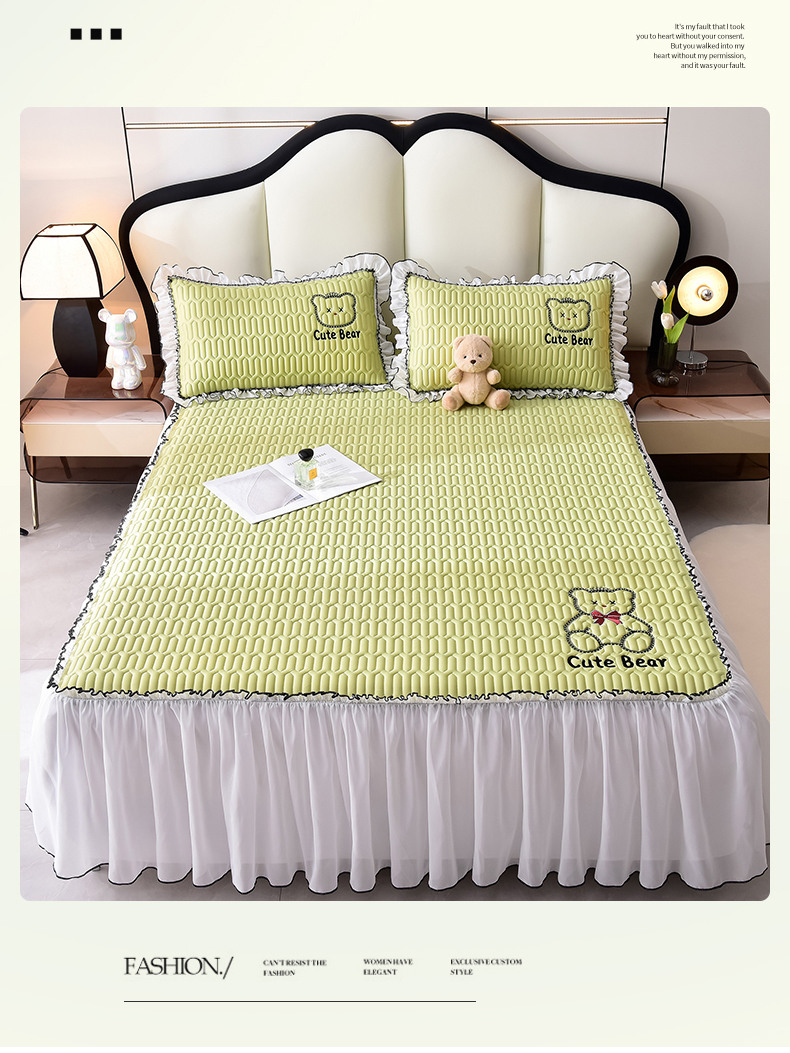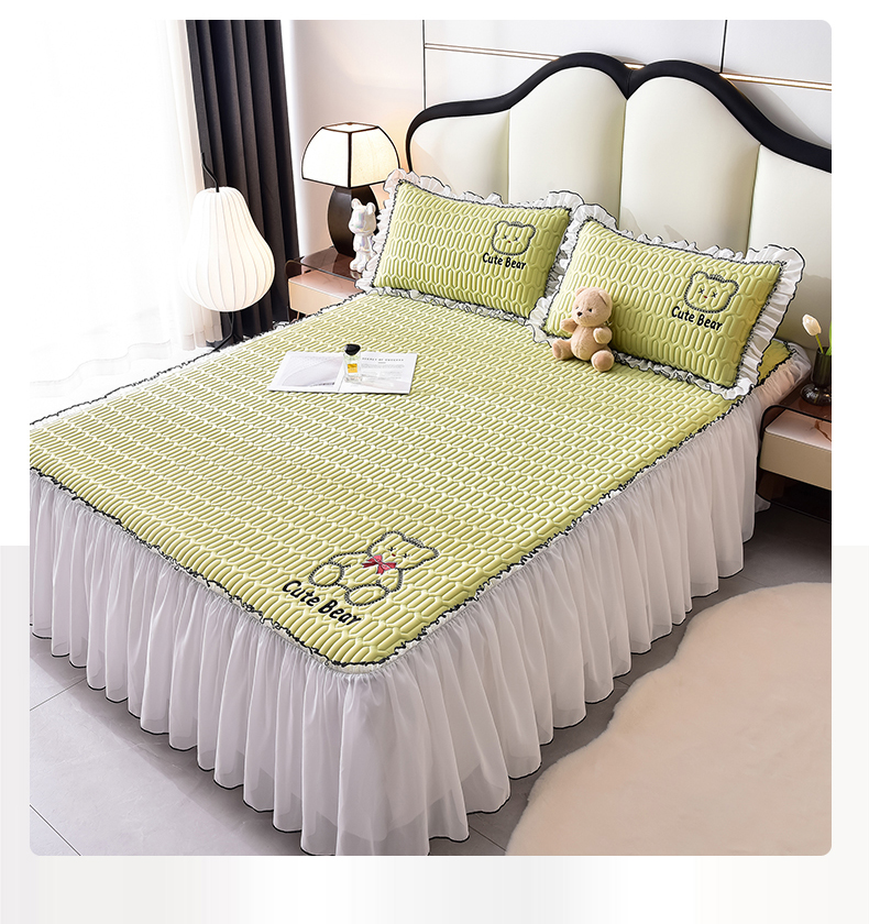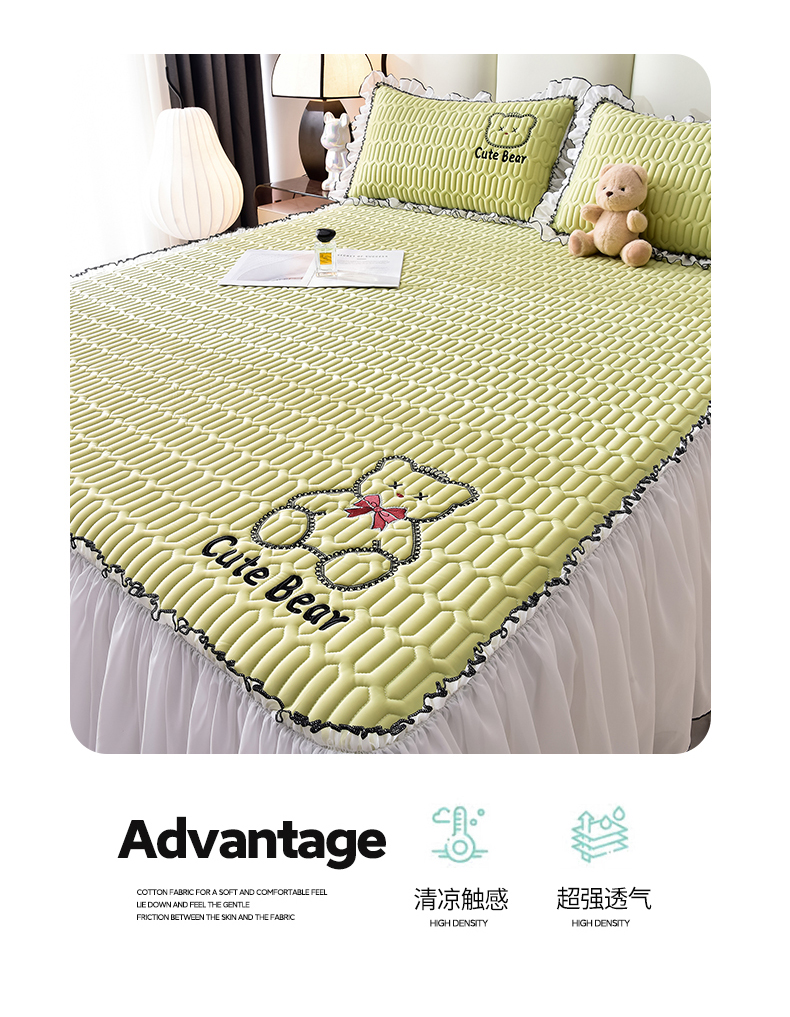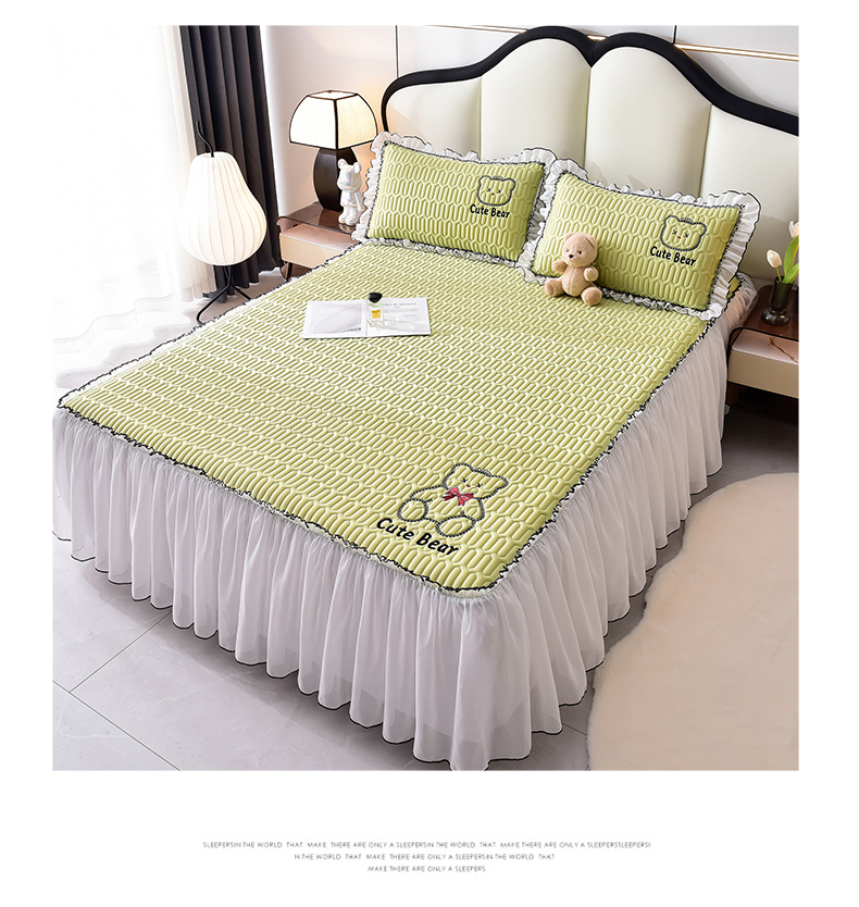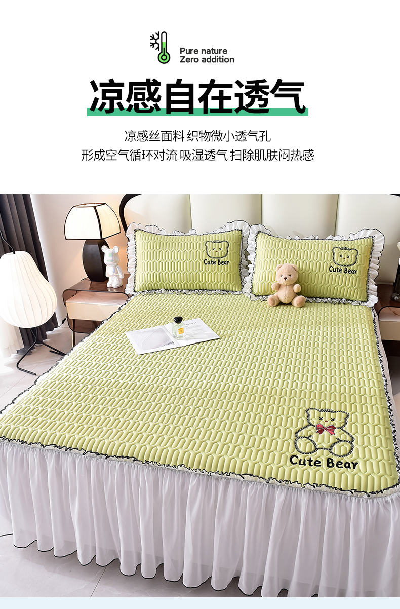 商品名称:炫拼家纺 2025新款coco熊床裙款乳胶凉席 coco熊-仙草绿