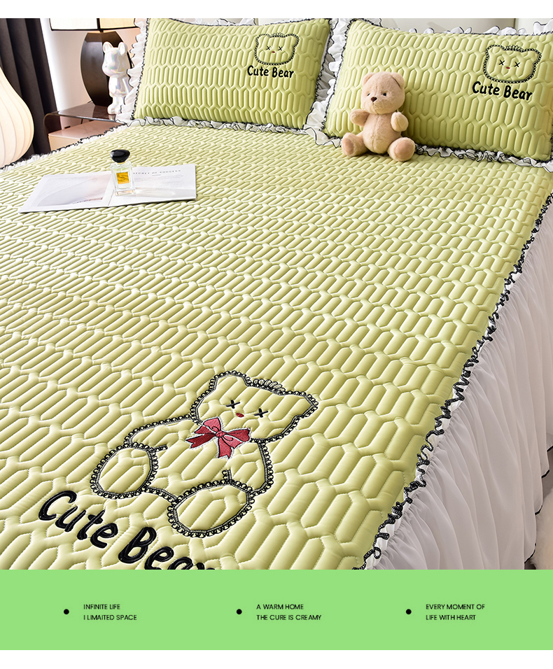 炫拼家纺 2025新款coco熊床裙款乳胶凉席 coco熊-仙草绿