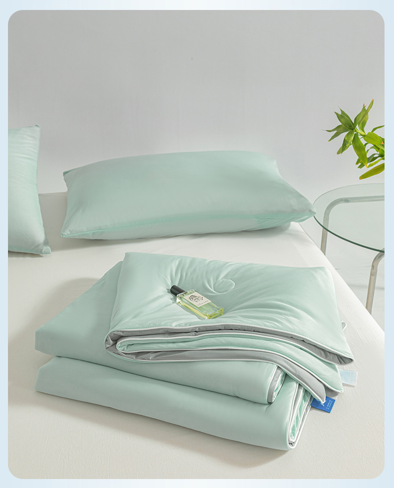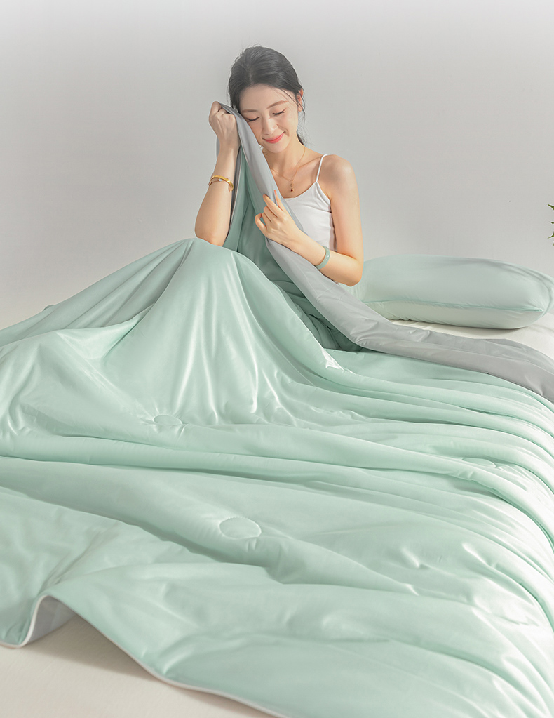 商品名称:圣尔雅家纺 2025新款A类云母凉感丝夏被空调被夏凉被子被芯 香草绿+灰