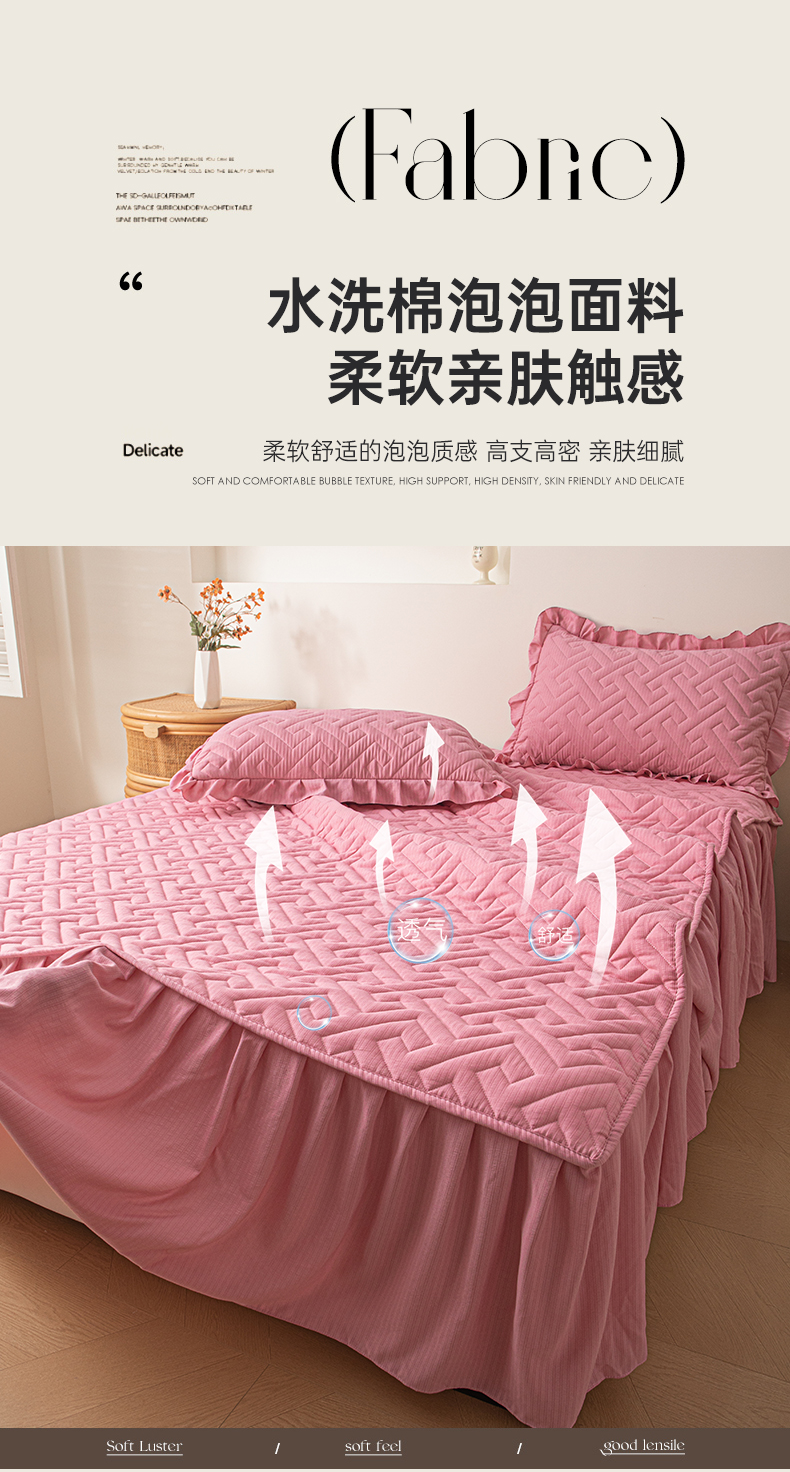 当前位置: 91家纺网 > 商品网购 > 床品套件 > 三件套 > 屹成家纺 2025新款水洗泡泡棉床裙 藕豆沙