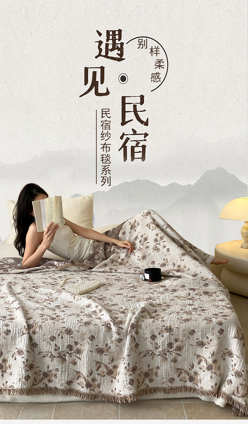 麻依 新款精细纱民宿纱布毯子四层 时屿