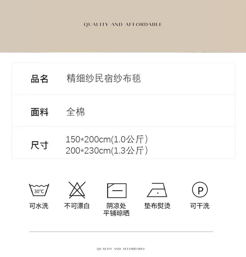 商品名称:麻依 新款精细纱民宿纱布毯子四层 时屿