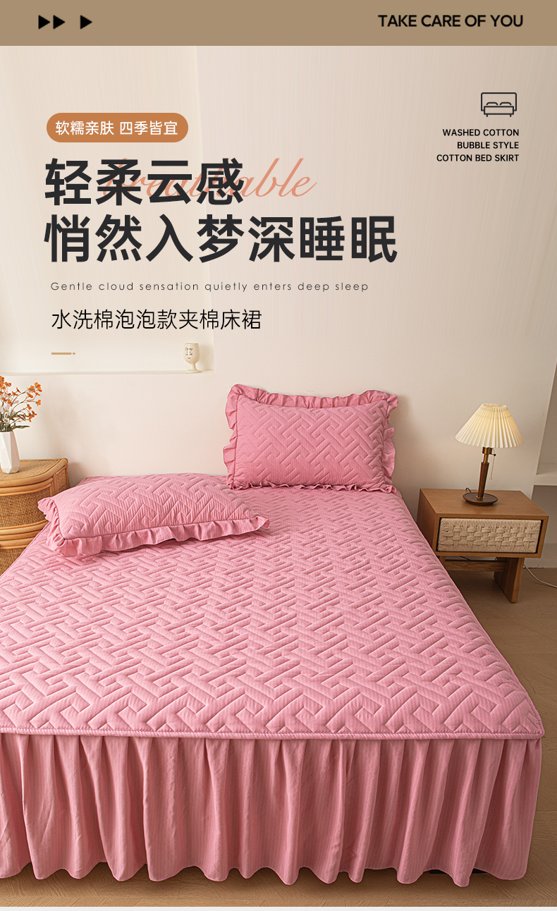 当前位置: 91家纺网 > 商品网购 > 床品套件 > 三件套 > 屹成家纺 2025新款水洗泡泡棉床裙三件套 藕豆沙