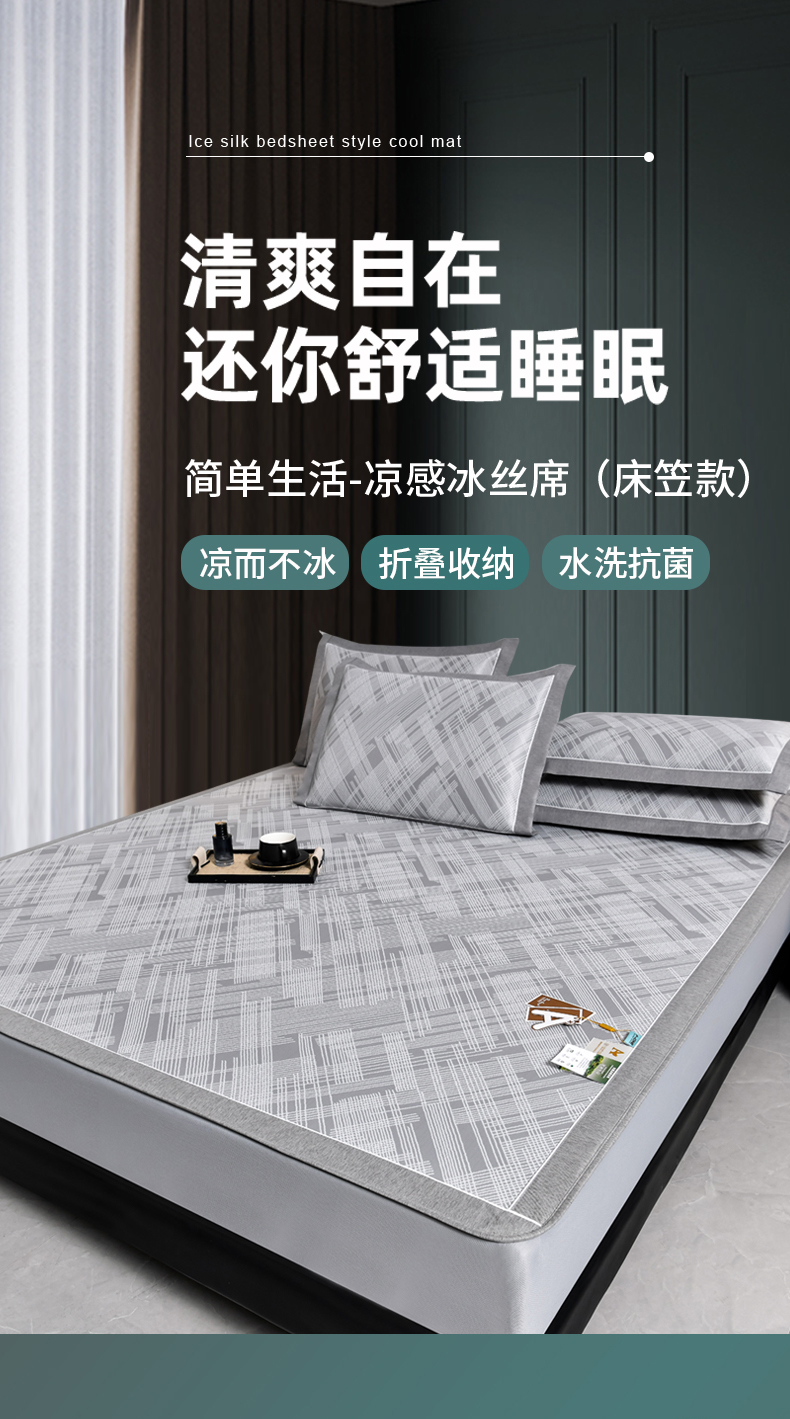 商品名称:小牛席业 2025新款简单生活-清凉冰丝席系列(床笠款)凉席藤席冰藤双面席冰丝席竹席凉席空调席草席三件套 灰色