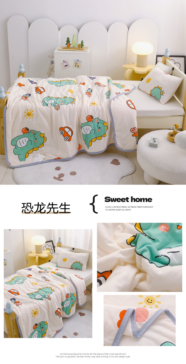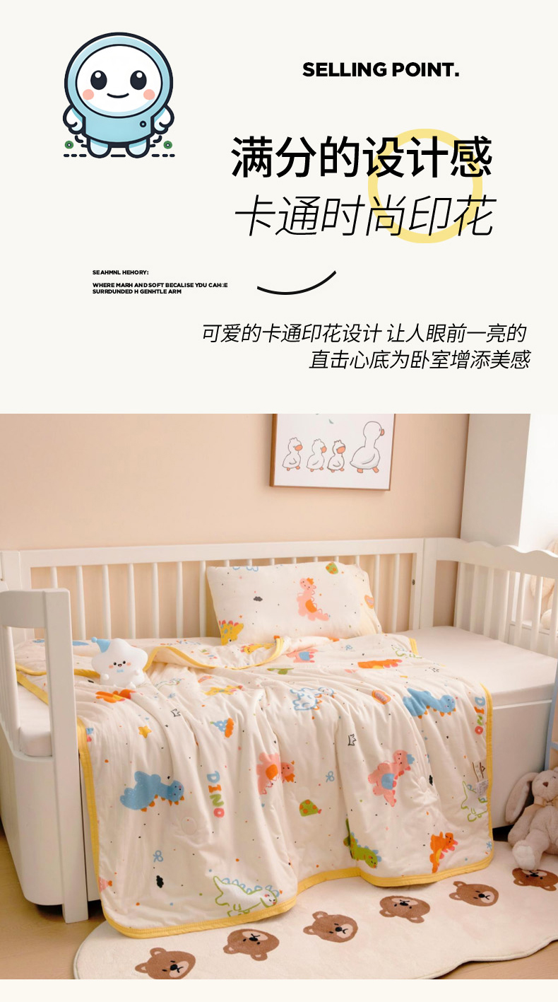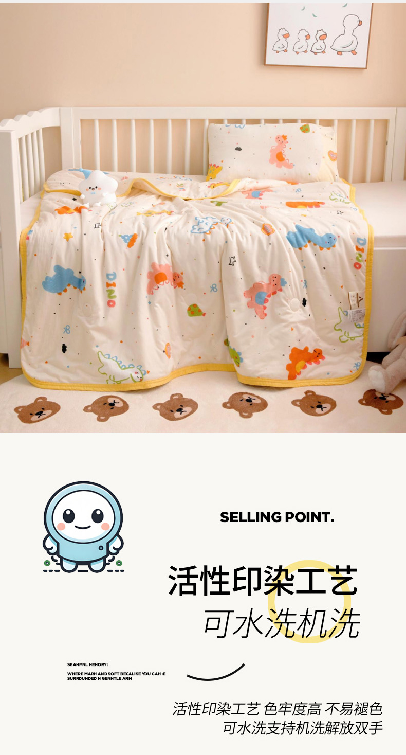 商品名称:鱼宝 2025新款A类时尚印花儿童针织棉夏被 波点恐龙