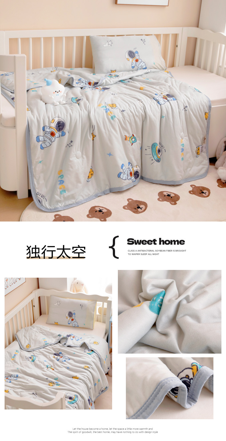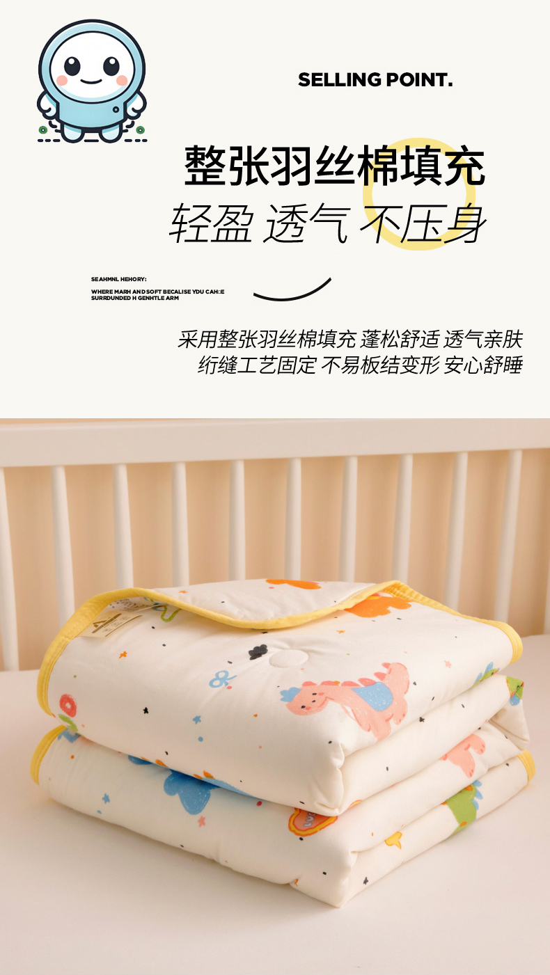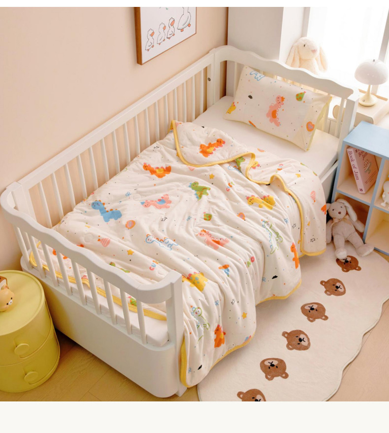 商品名称:鱼宝 2025新款A类时尚印花儿童针织棉夏被 波点恐龙
